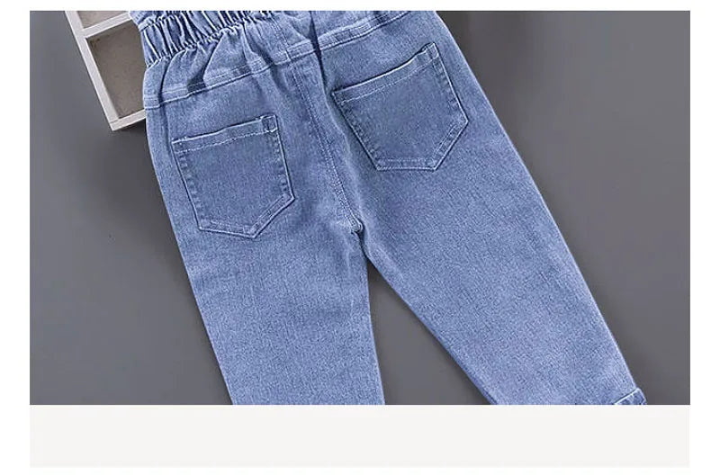 Winter Baby Girls Plush Denim Pants Toddler Kids Cartoon Butterfly Printing Jeans Children Fashion Leisure Keep WarmTrousers1-6Y
