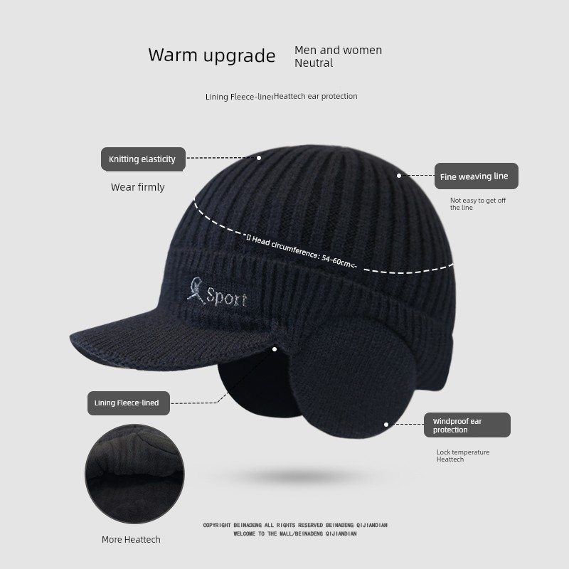 Winter Heattech Male Fleece-lined Thickened Cold Protection Cycling Hat