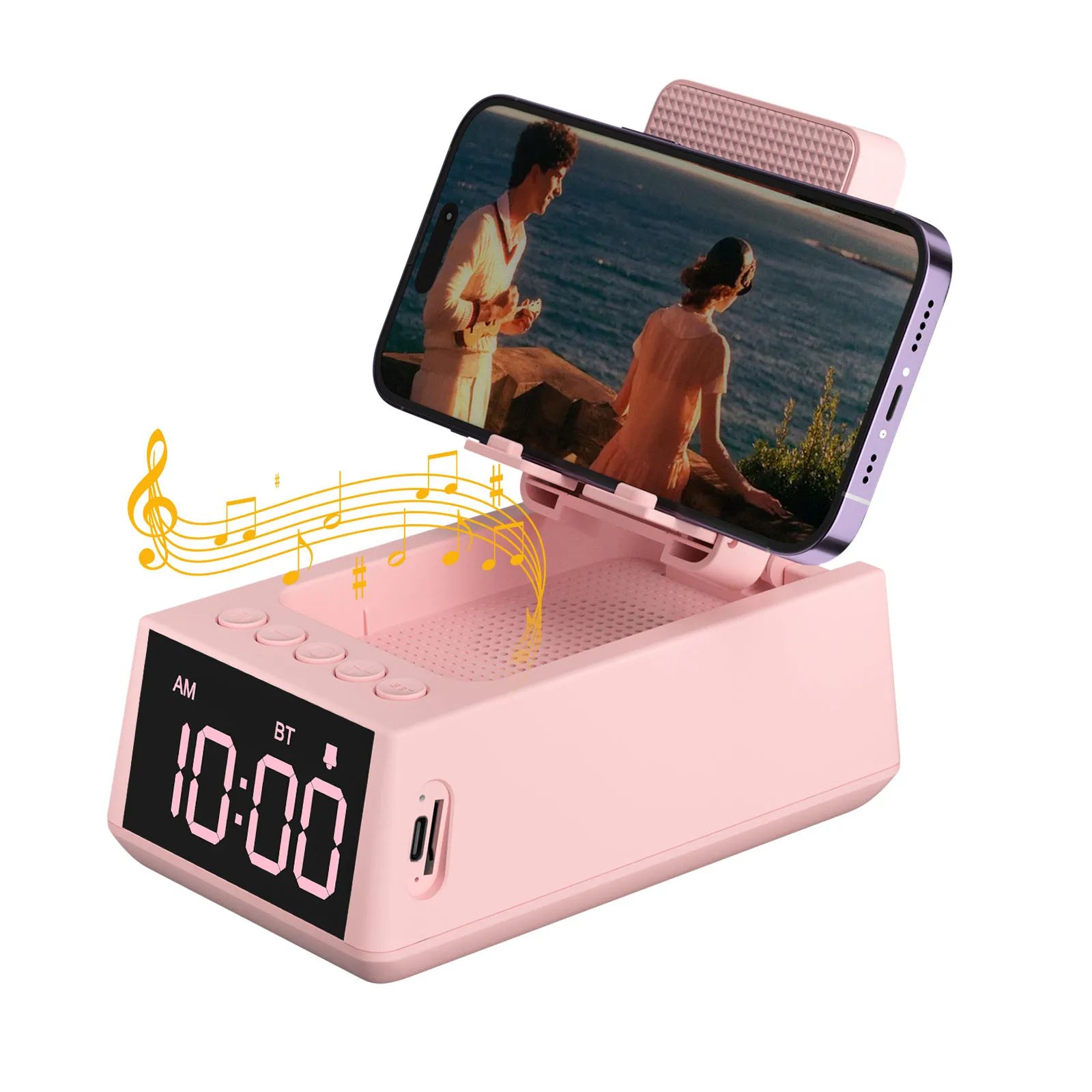 your phone to the speaker and start playing your favorite tunes. Desk clock will automatically sync with your phone, ensuring you always get the