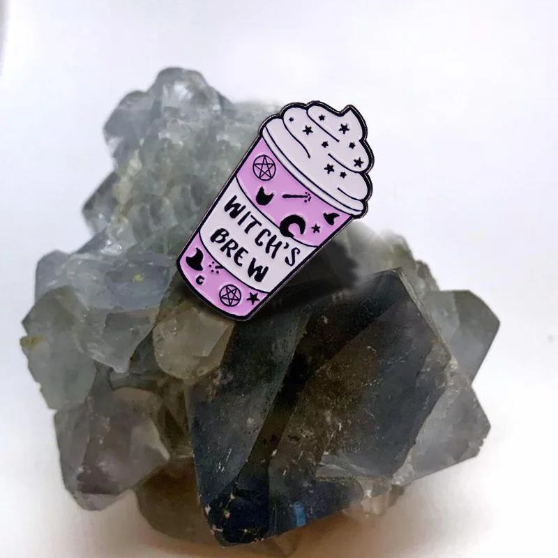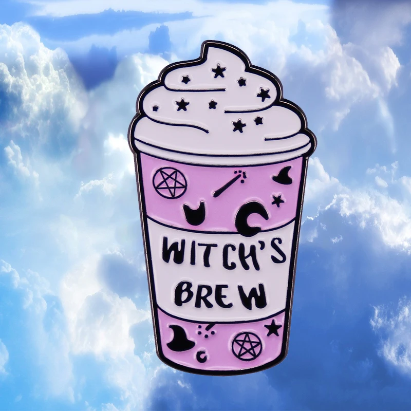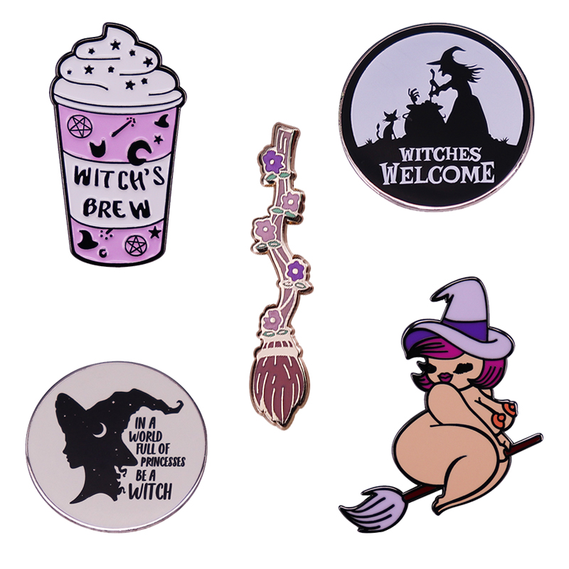 Witch Lapel Pin Collection Magic Broomstic Brooch Ice Cream Mug Frappuccinoo Badge Witches Welcome Jewelry