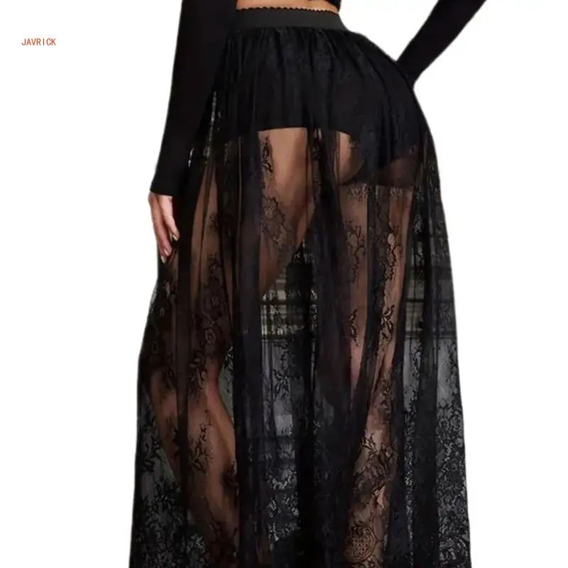 Women 2 in1 Flowys Meshes Lace Maxi Skirts A Line Long Skirt with Shorts Bottom Festival Raves Clothes Halloween Costume