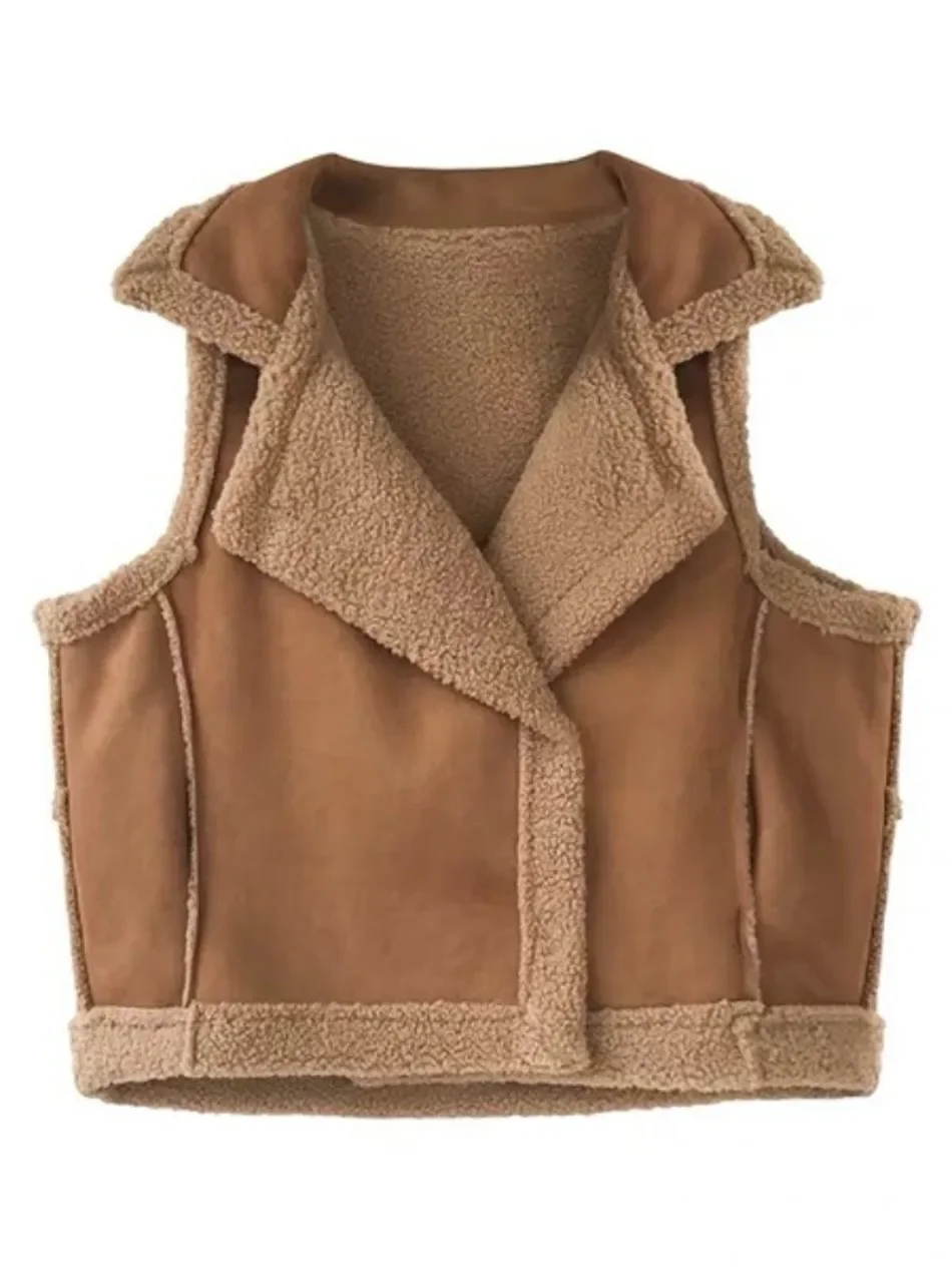 Women 2024 Autumn Winter New Waistcoat Loose Outerwear Popular Top Sleeveless Solid Color Jacket Female Leather Vest Coat