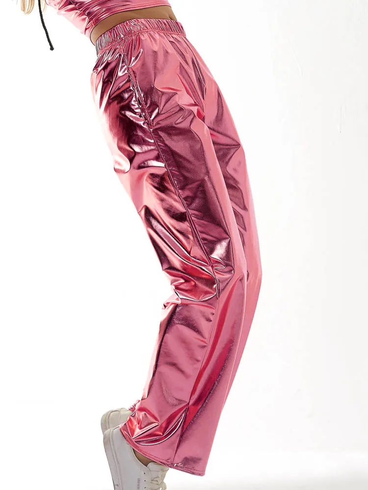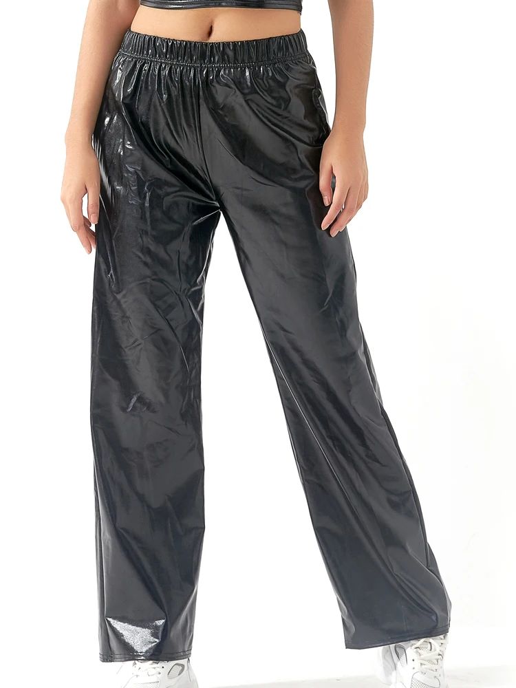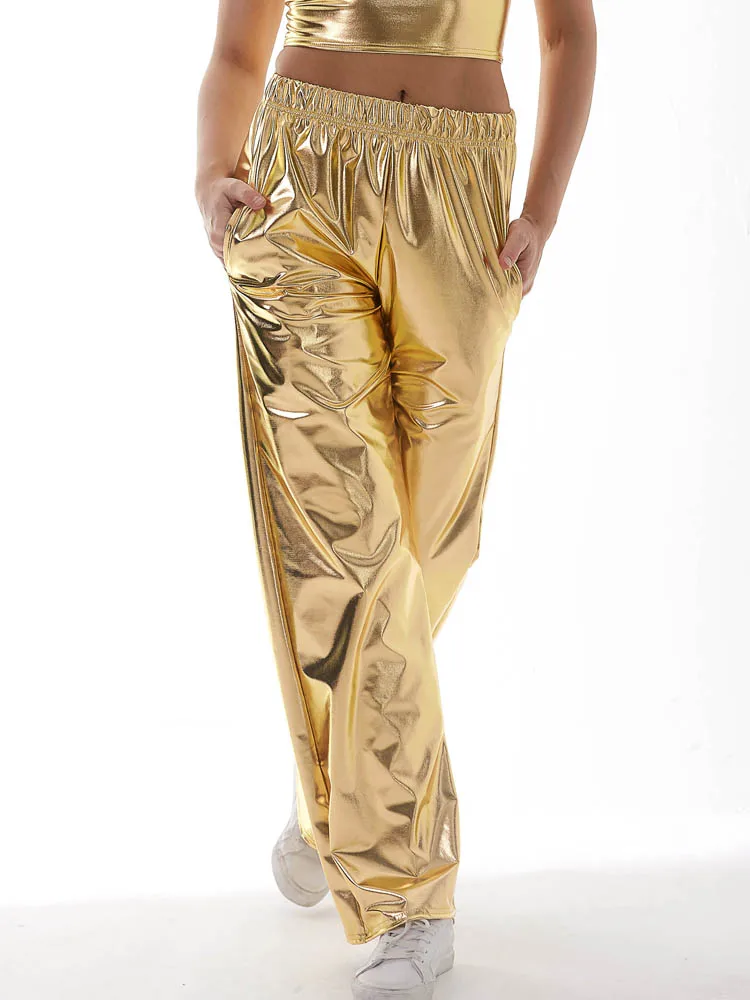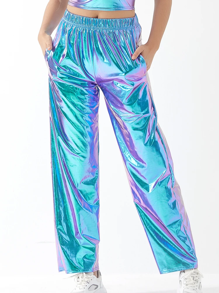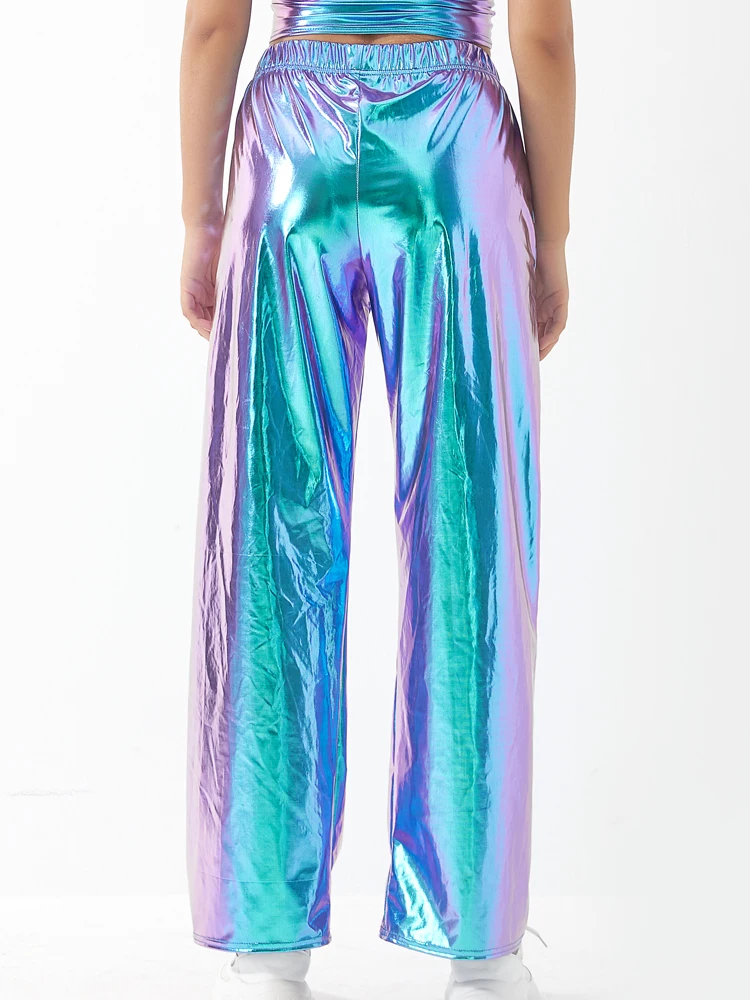 Women Adult Shiny Straight Leg Pants Casual High Waist Metallic Pants Super Long Holographic Pants Disco Bottoms