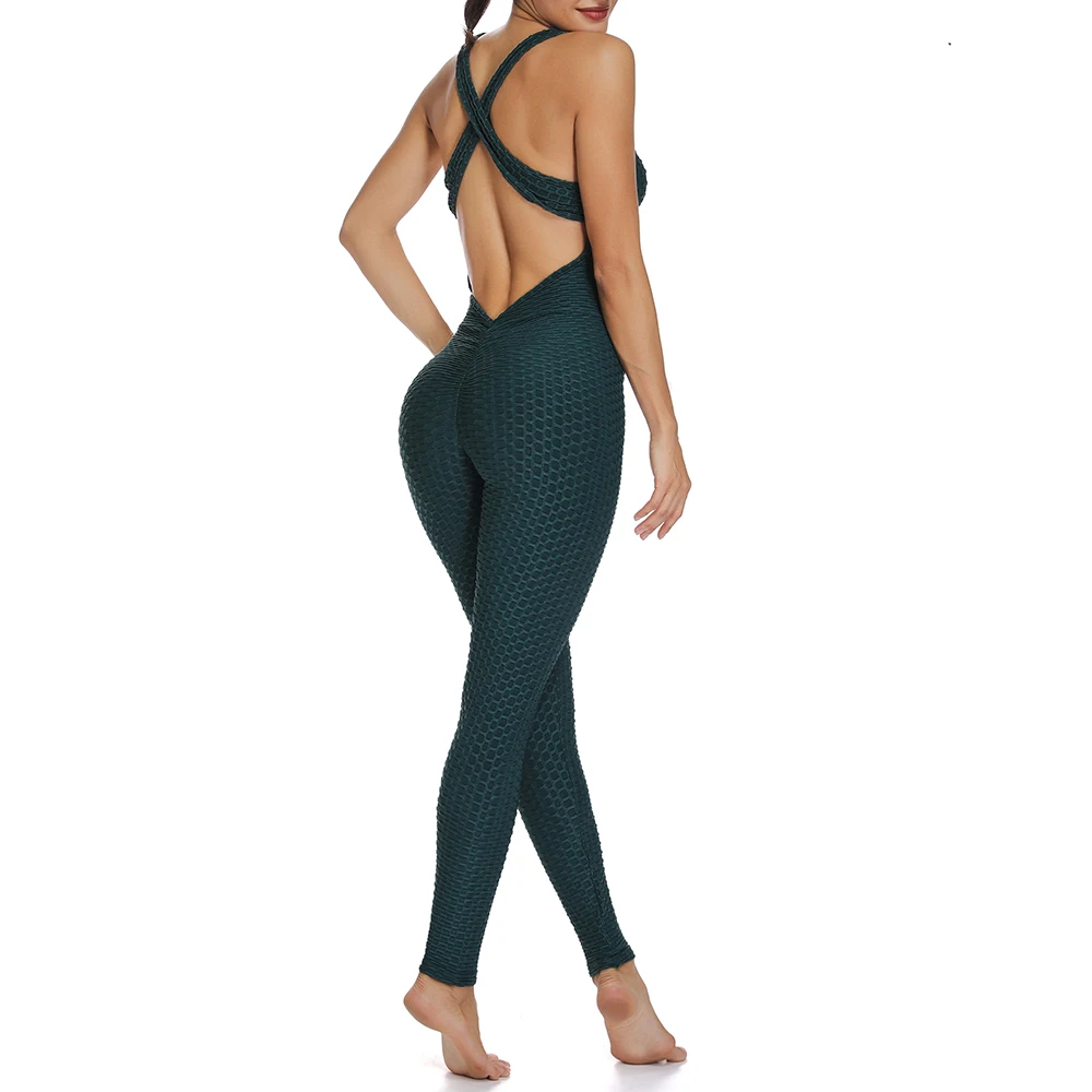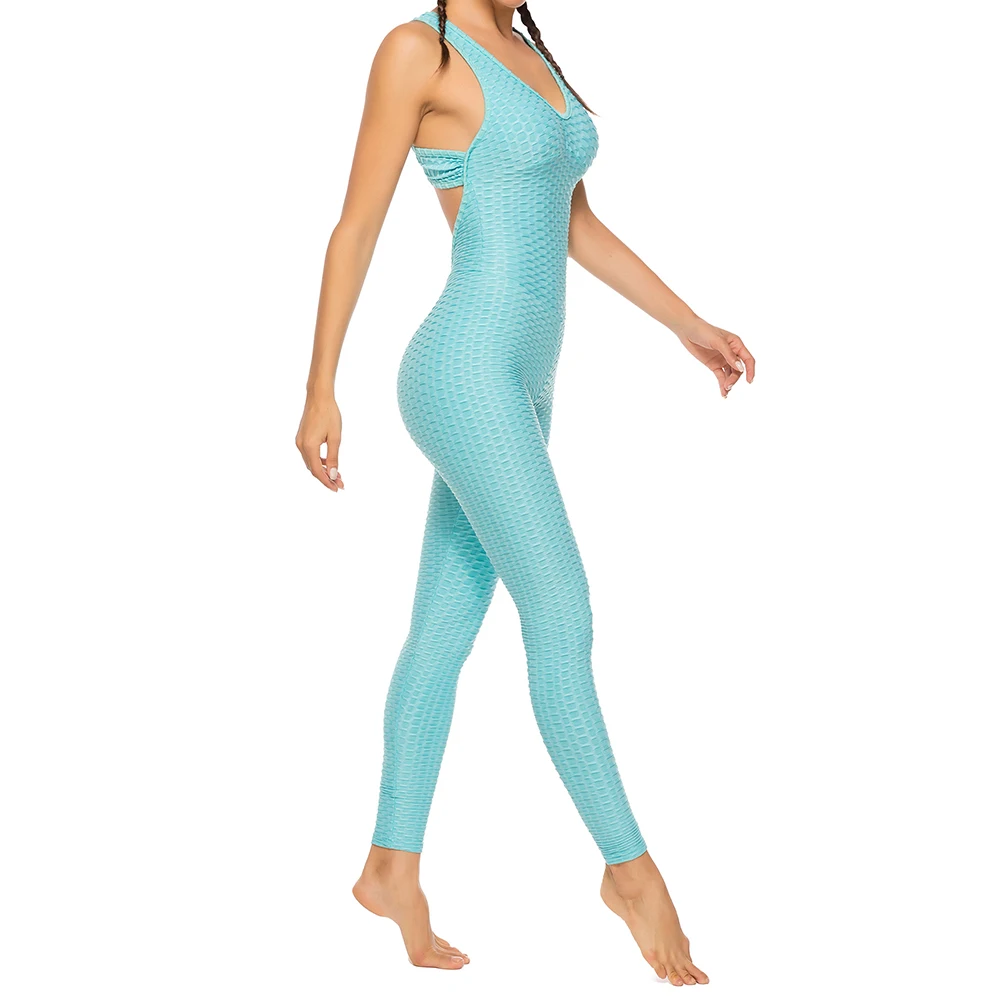 Women Halter Yoga Set Black Activewear Sexy Bandage Sleeveless Jumpsuit Skinny Rompers Solid Elastic Bodycon Fitness Sport Suits