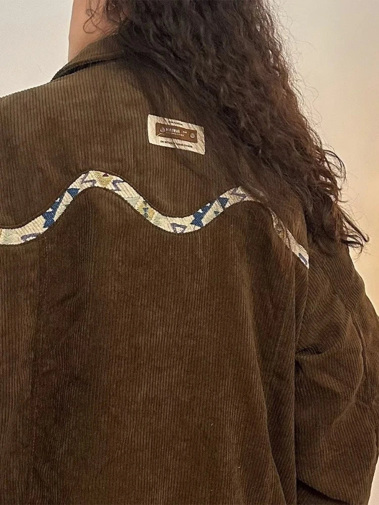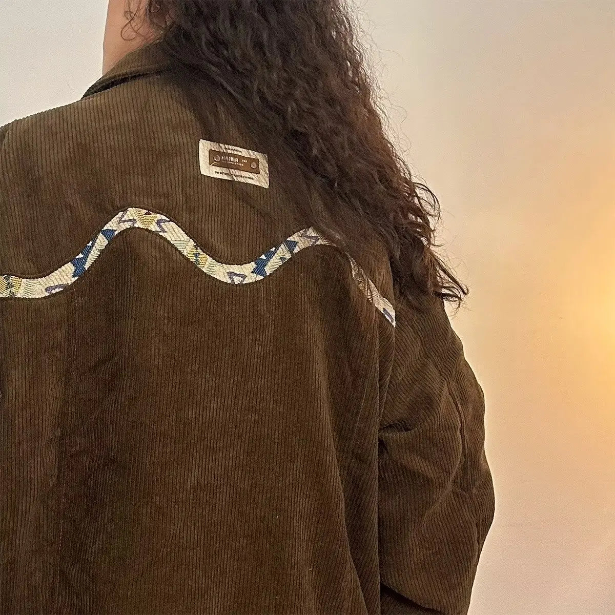 Women Jackets Geometric Contrast Color Leisure Fashion Versatile Retro Japanese Style Chic Streetwear Blocking Coats Warm Daily