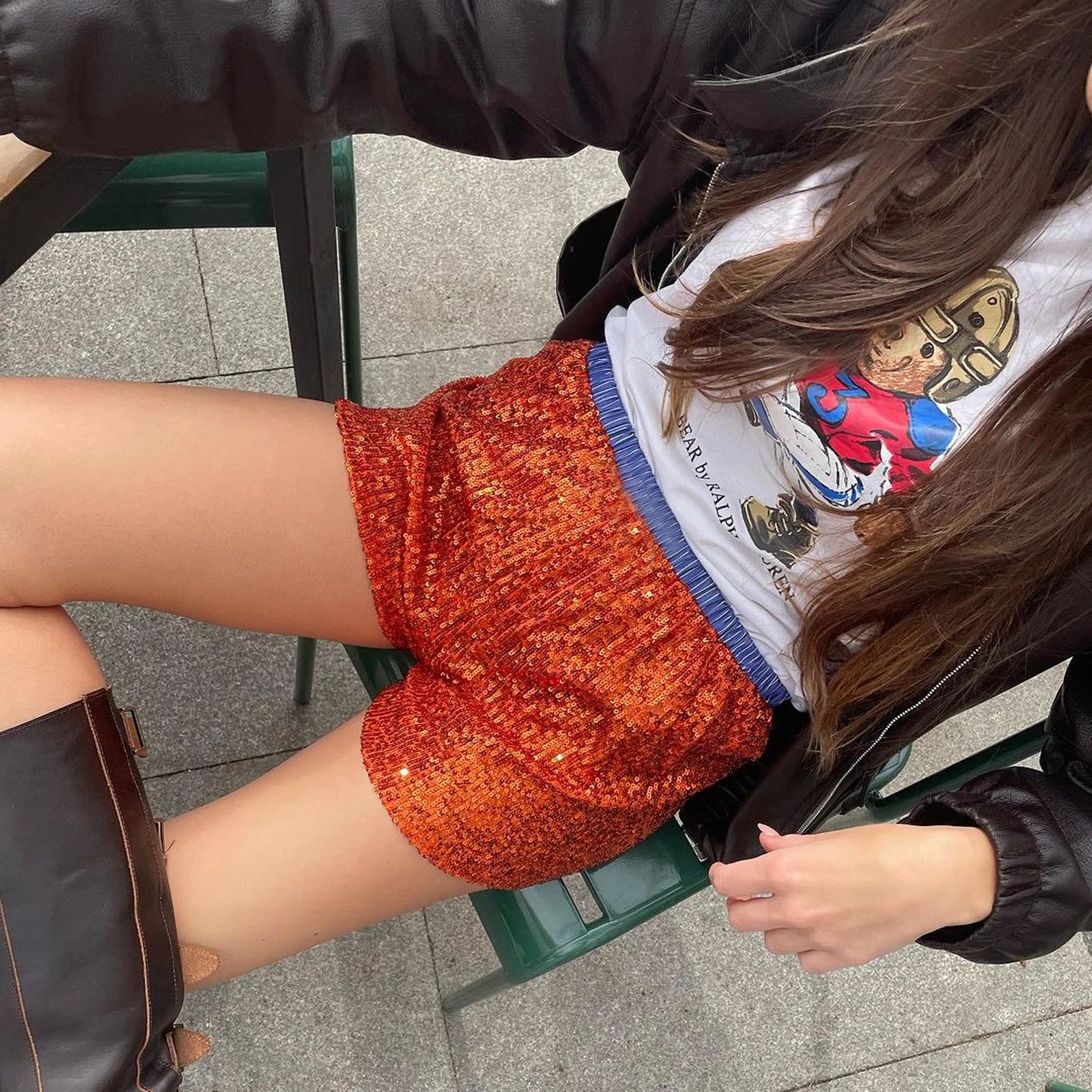Women Mini Sequin Shorts Sexy Hot Elastic Waist Shiny Shorts Summer Casual Shorts Streetwear for Carnival Party Clubwear