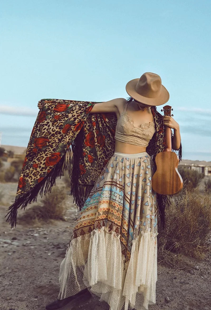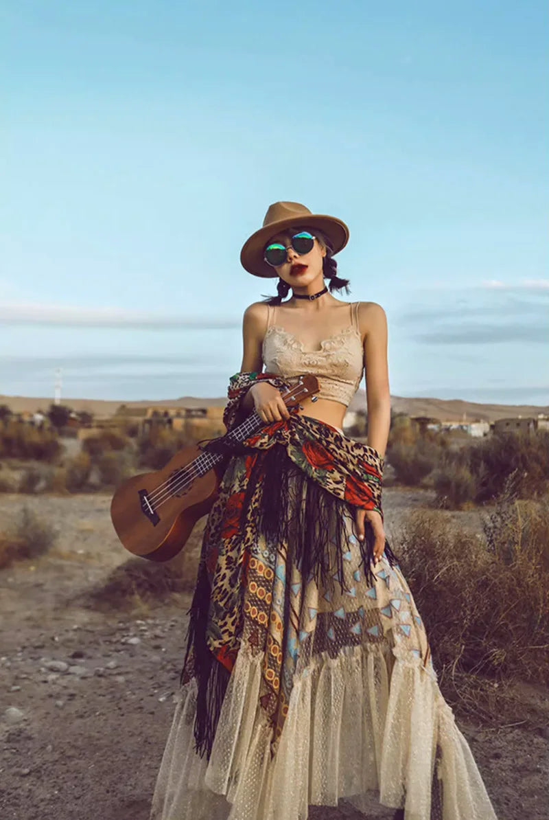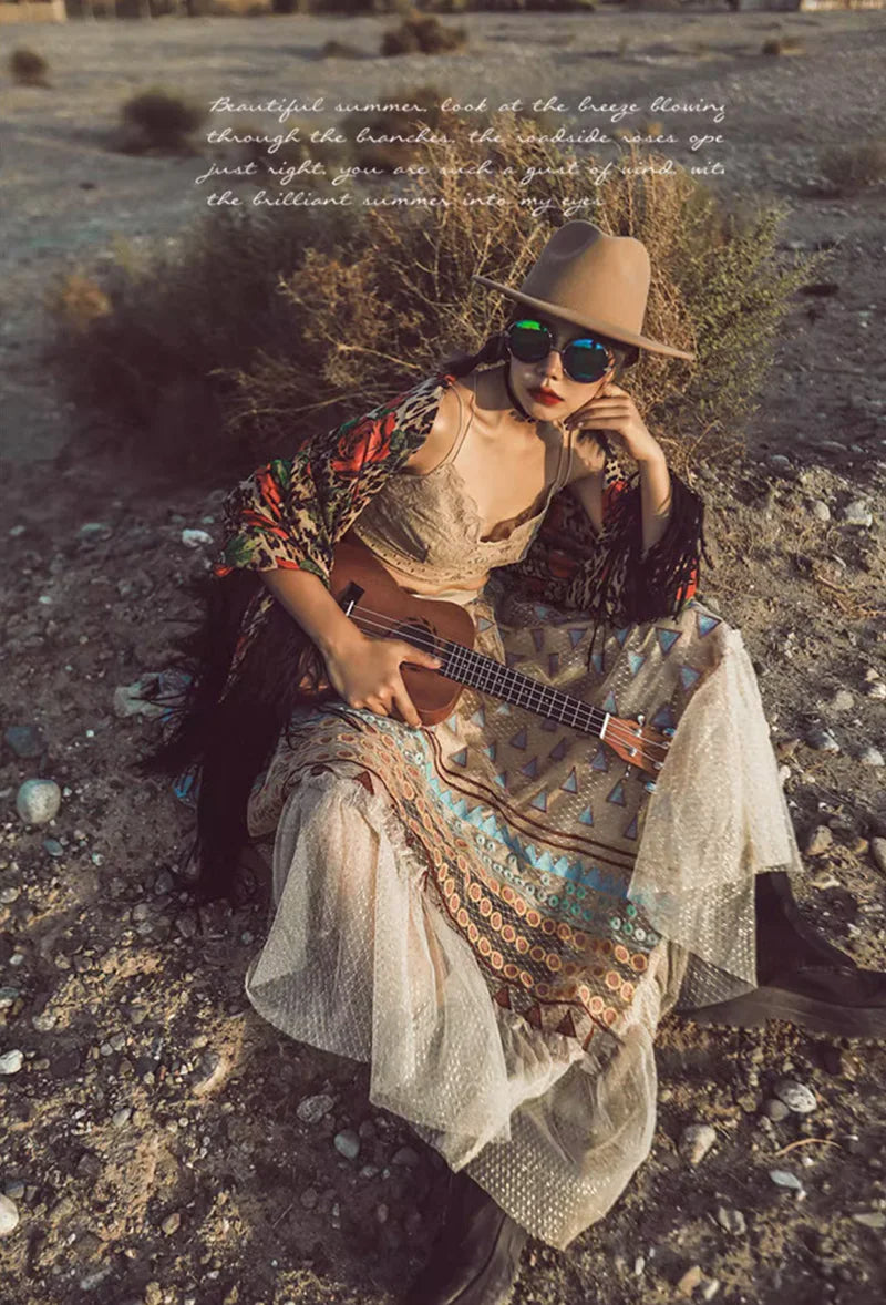 Women‘s Travel Holiday Wear Bohemian Colorful Embroidery Lace Ruffles Skirt Asymmetrical Hem Skirt Female Shiny Gold Mesh Skirts