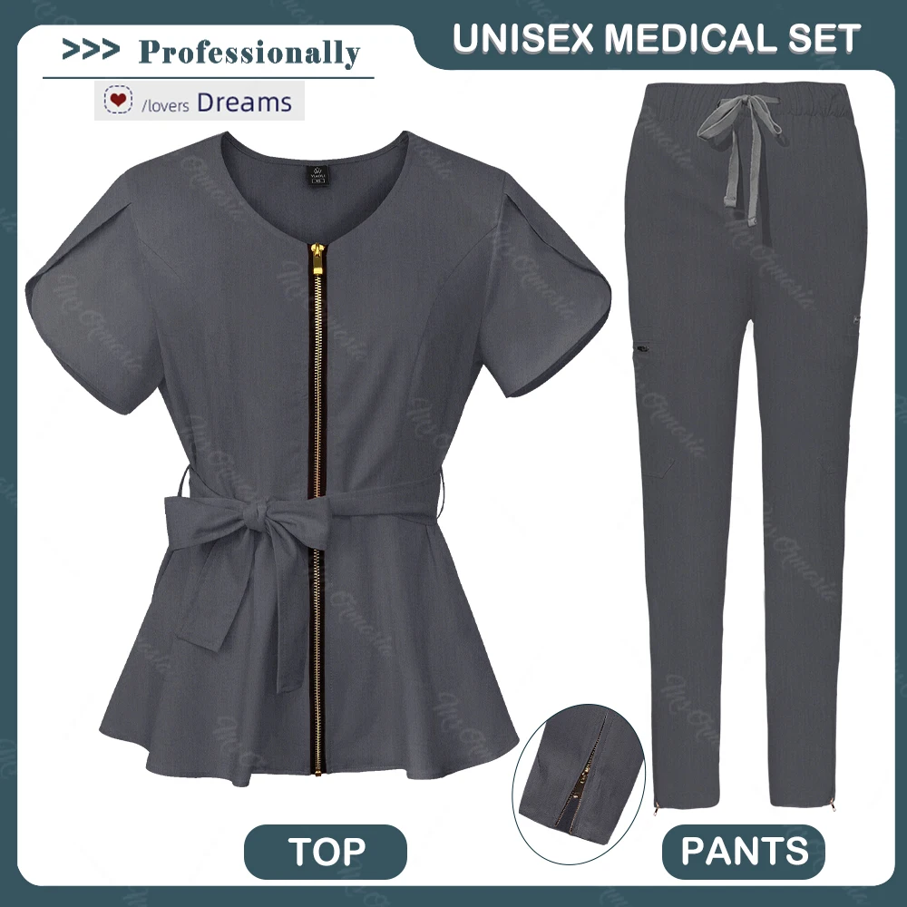 Women Scrubs set,zipper collar beauty clothes,high quality anti wrinkle medical uniforms,soft comfortable fashion nurse workwear