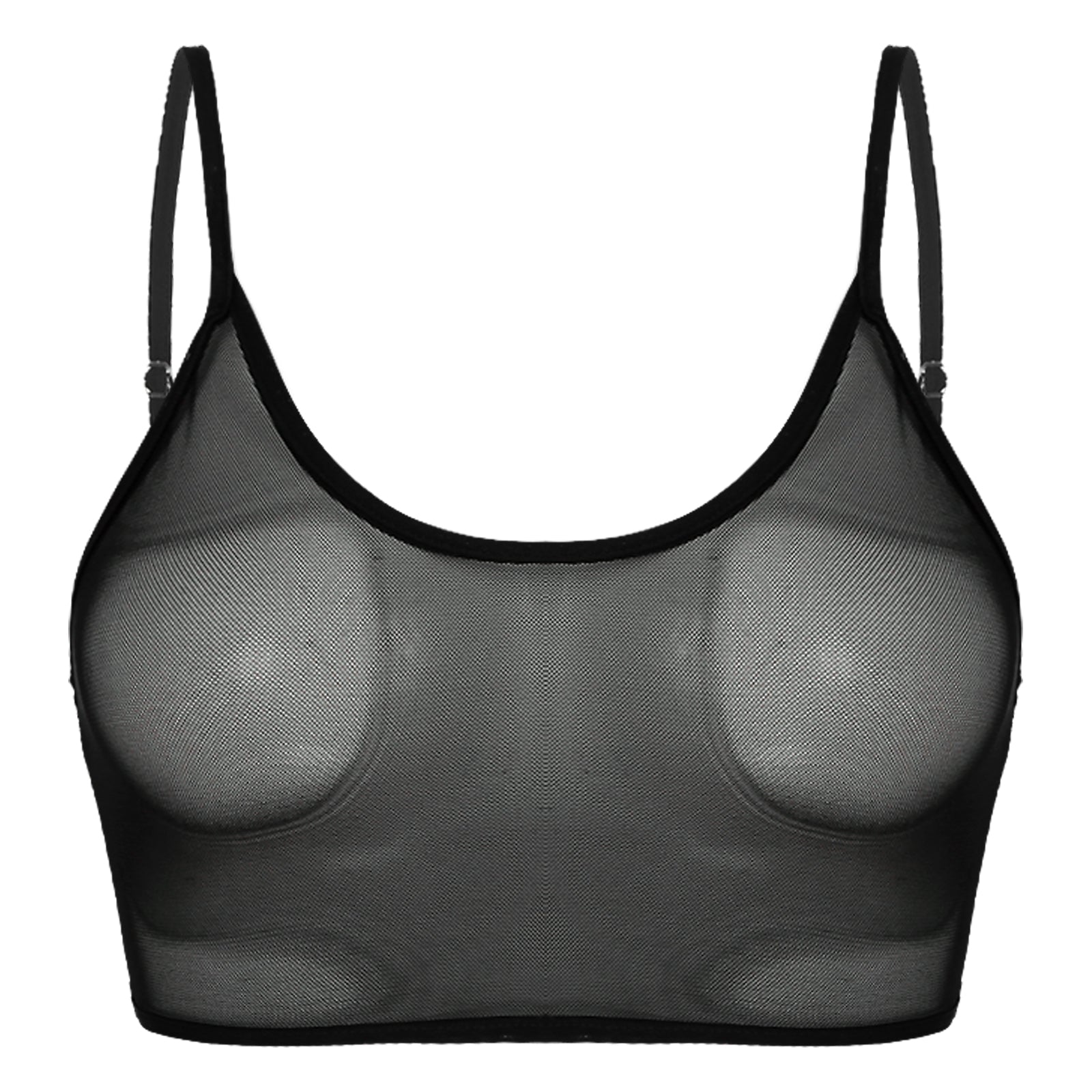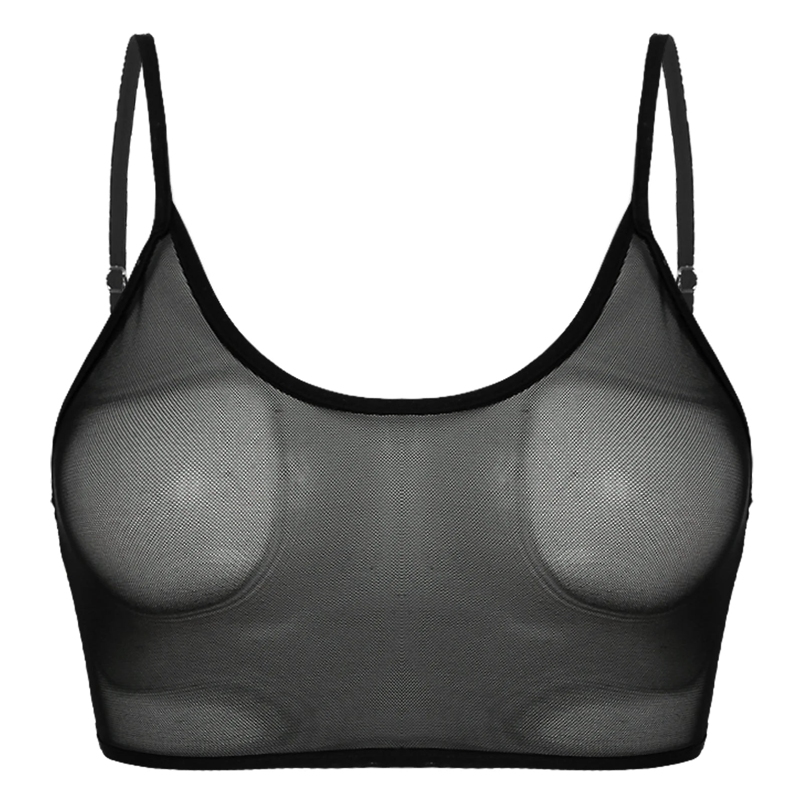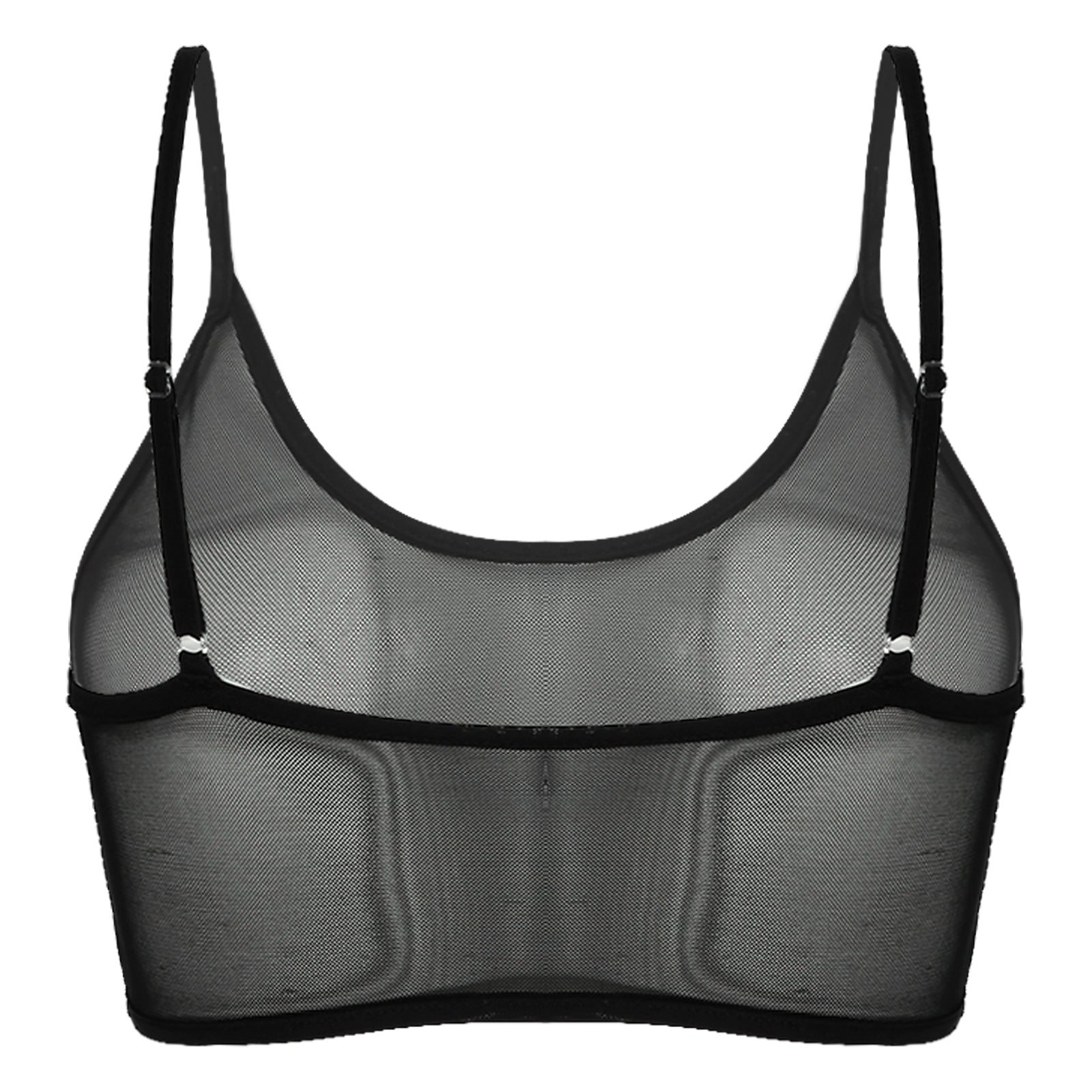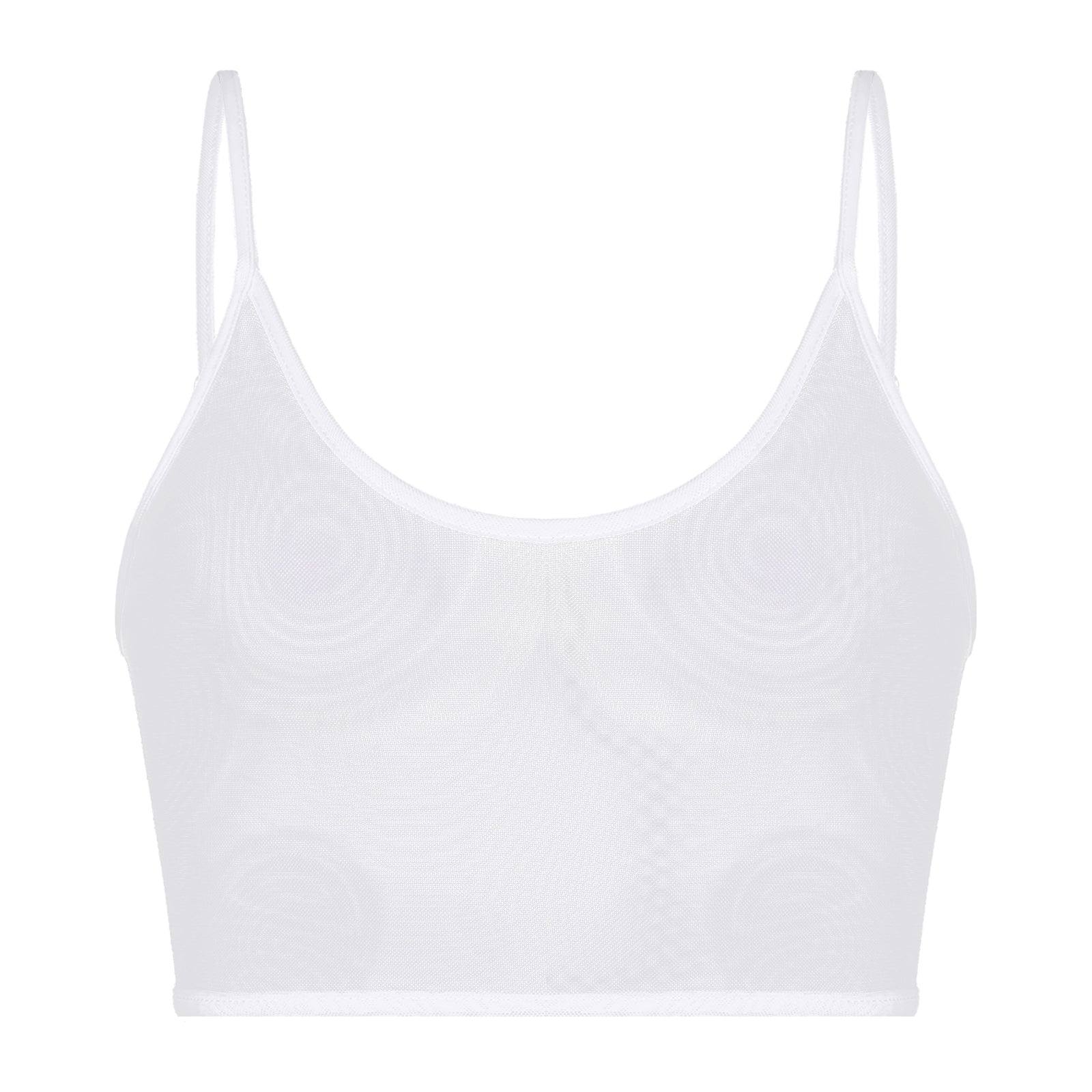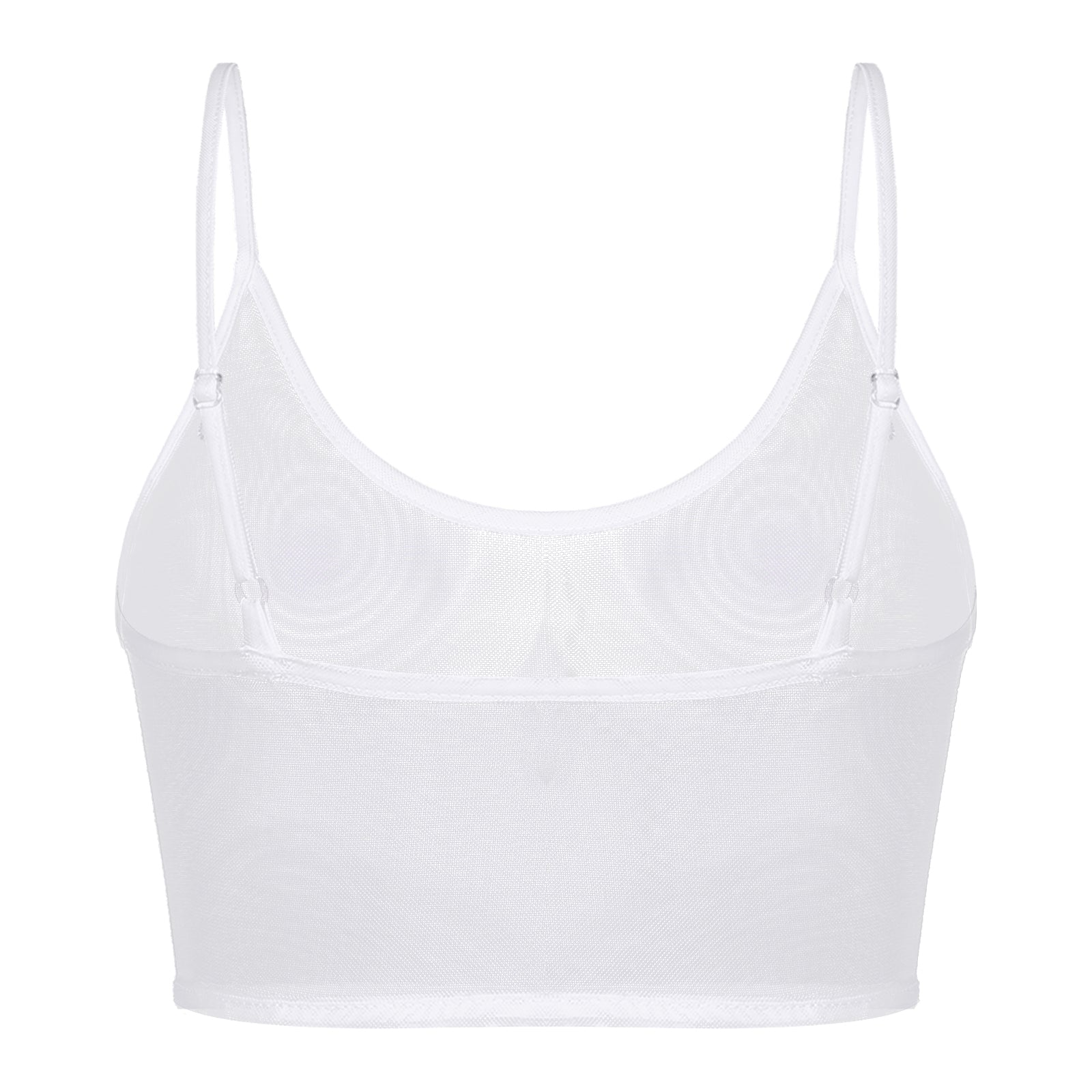 Womens Adjustable Spaghetti Straps Sheer Mesh Camisole Sleeveless Crop Top Party Club Vest.