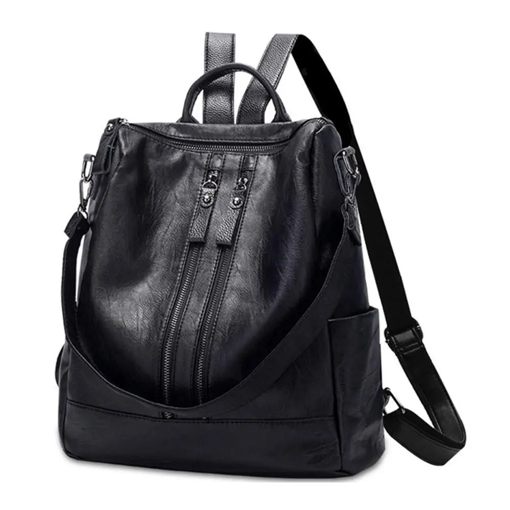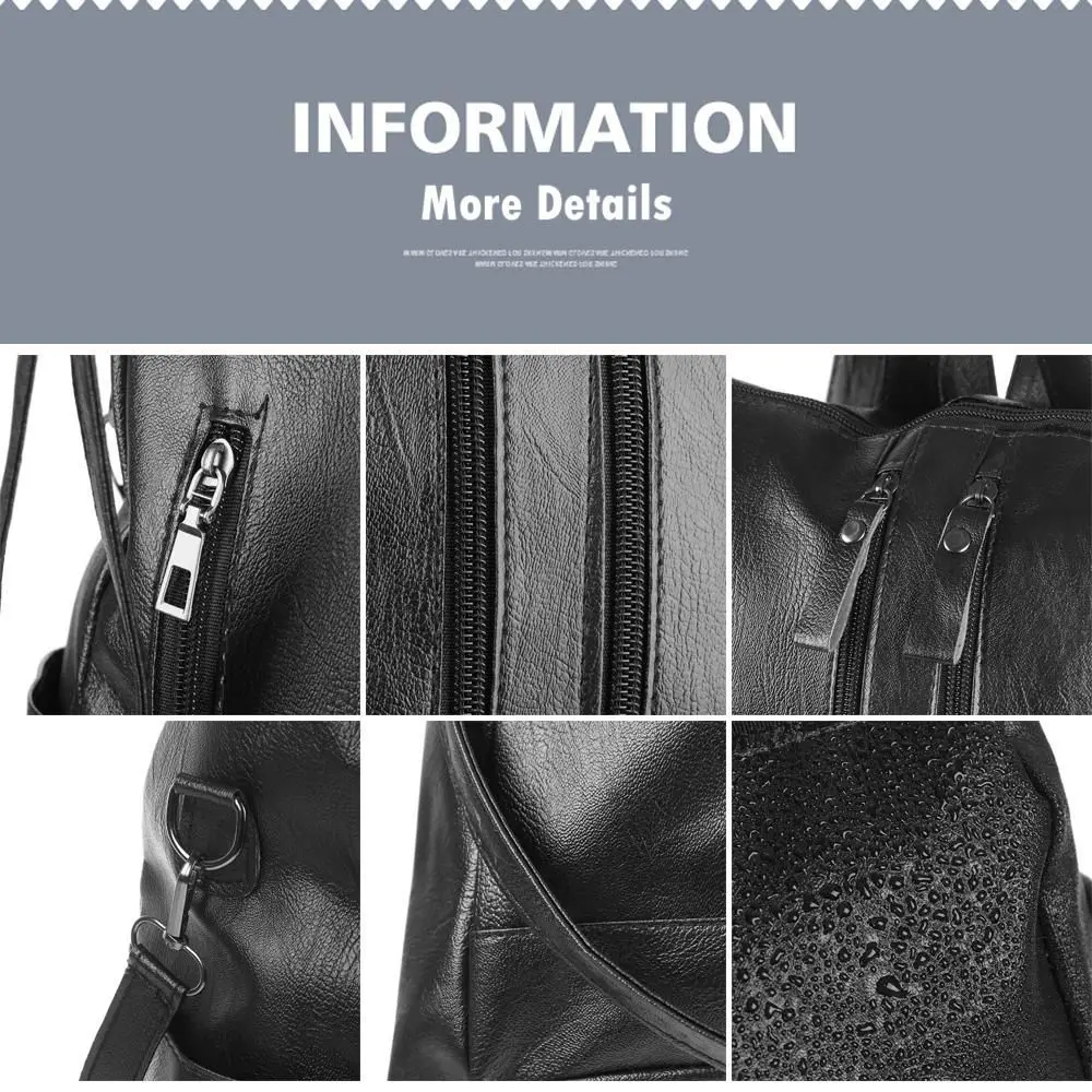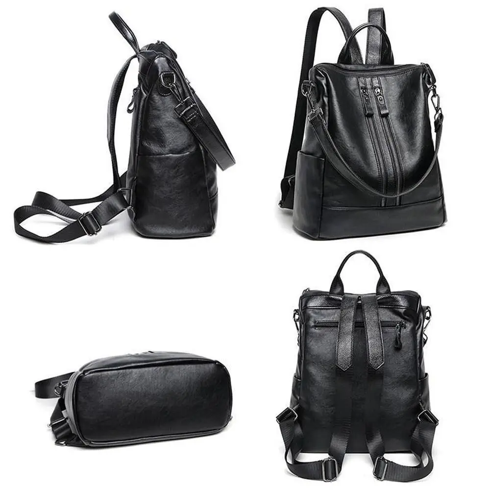 Women Soft Backpack School Leather Black Casual Multifunctional College Bag Large Capacity Shoulder Bags Travel Tote Backpack