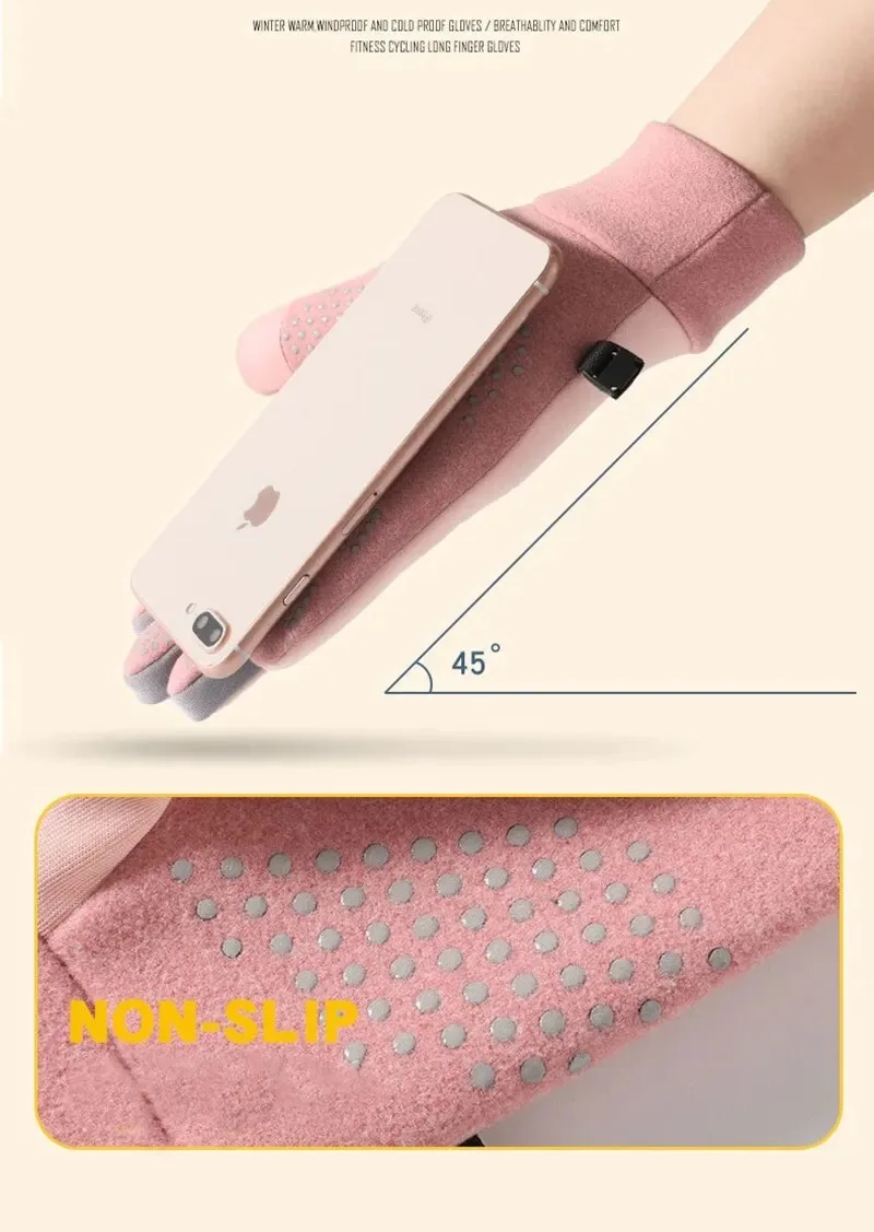 Womens Autumn and Winter Sports Warm Gloves Waterproof and Anti Slip Cycling Gloves Wind and Cold Resistant Outdoor Activity Glo