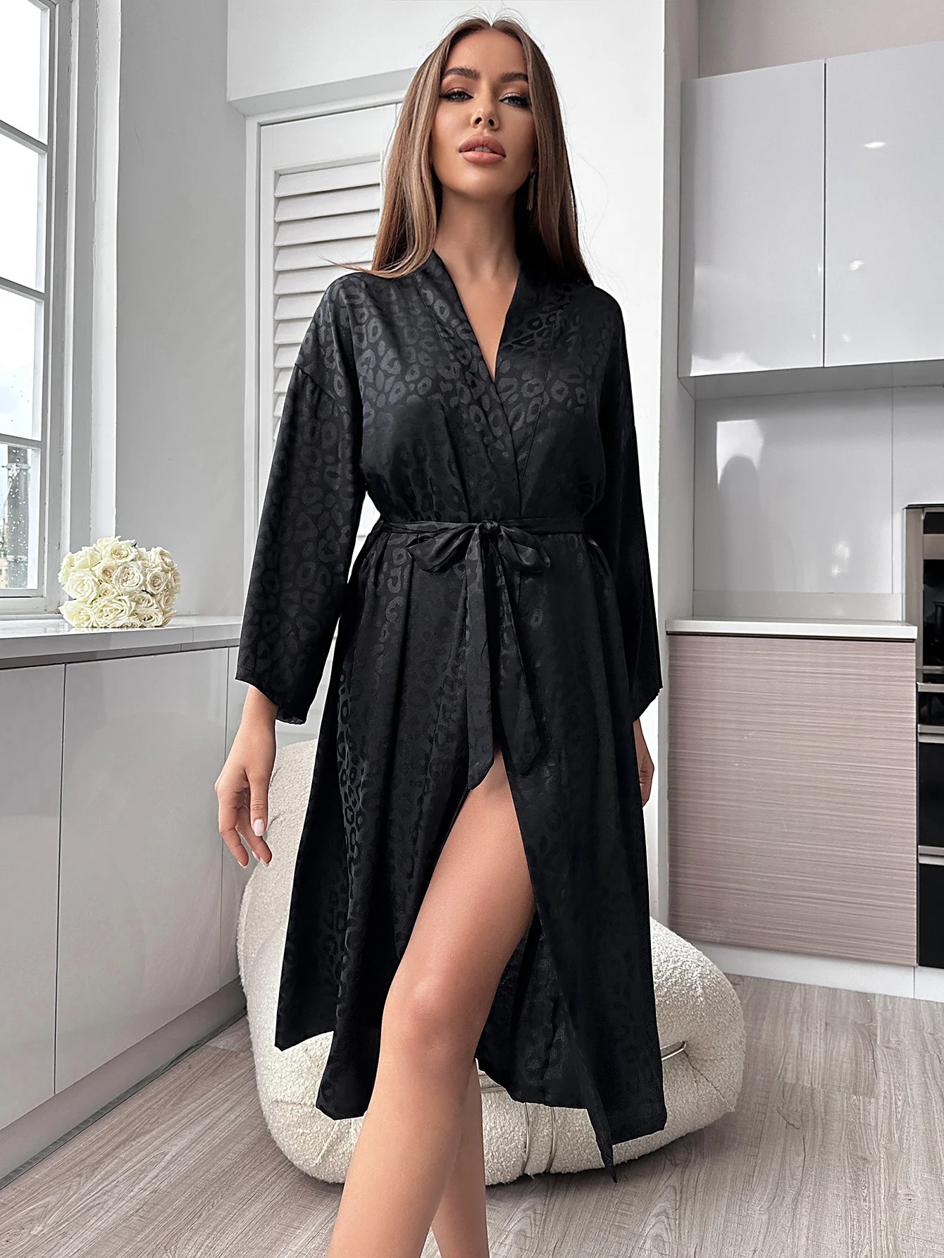 Women's Pajamas V-neck Satin Silk Black Jacquard Gown Robee Pajamas Women's Pajamas Loose Bathrobe Pajamas
