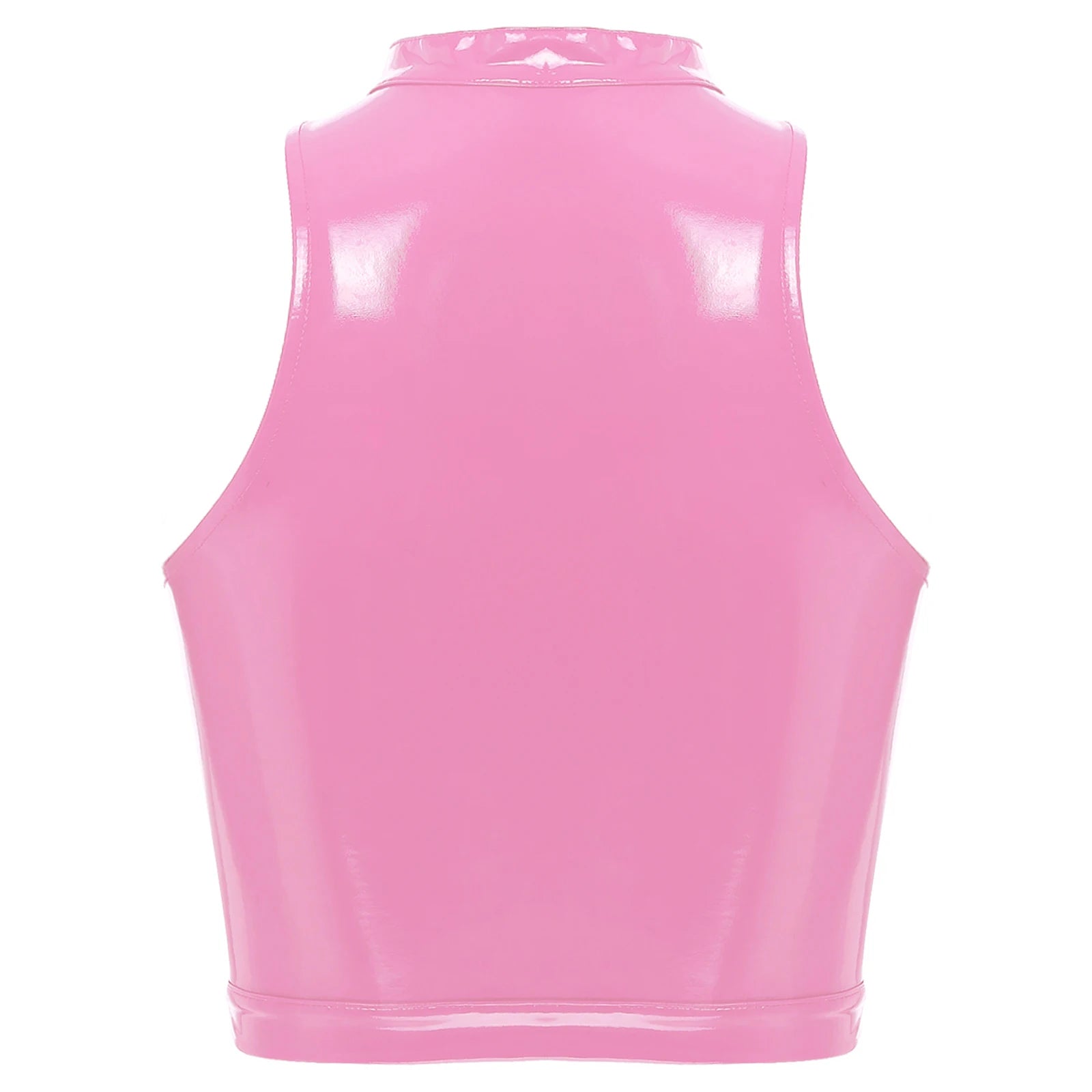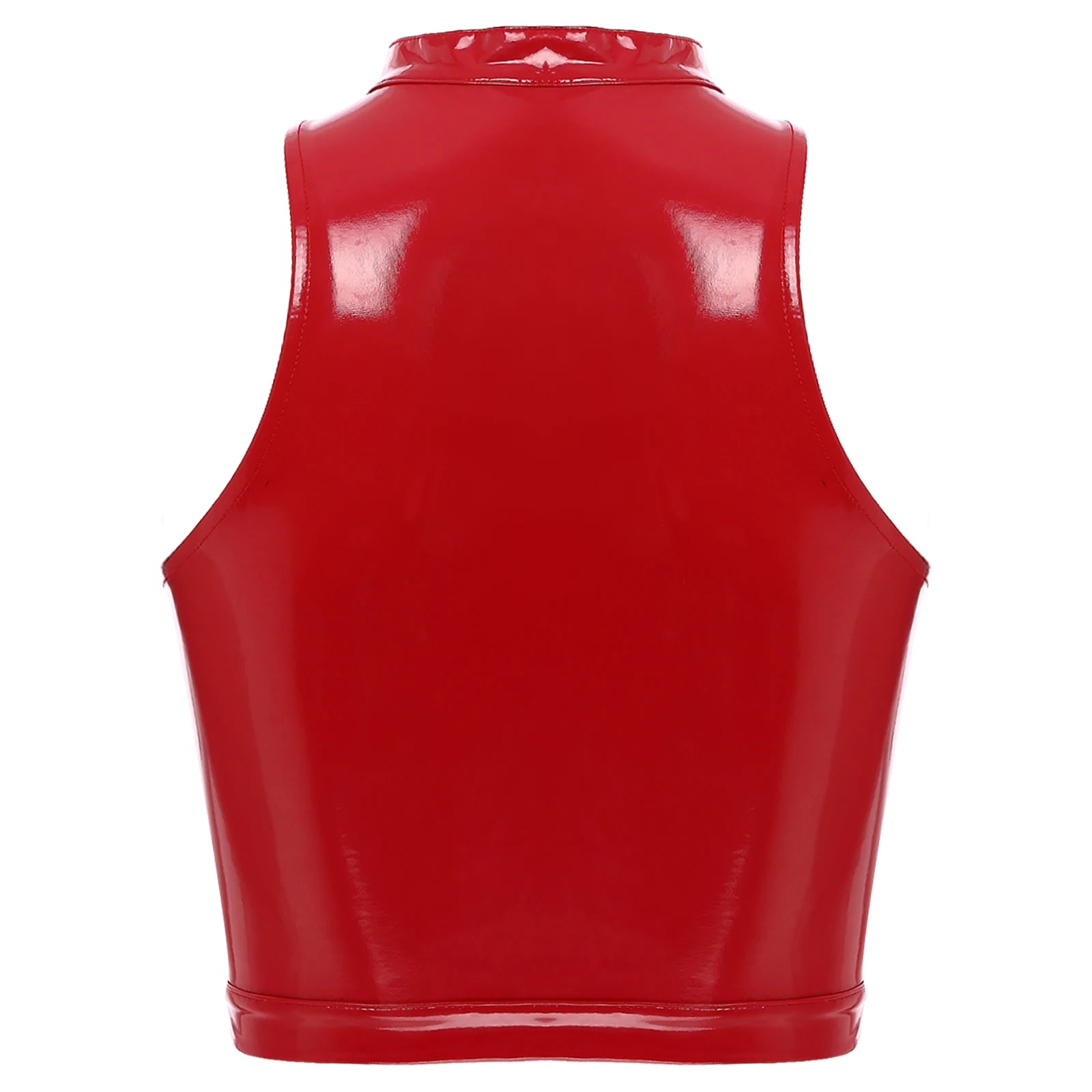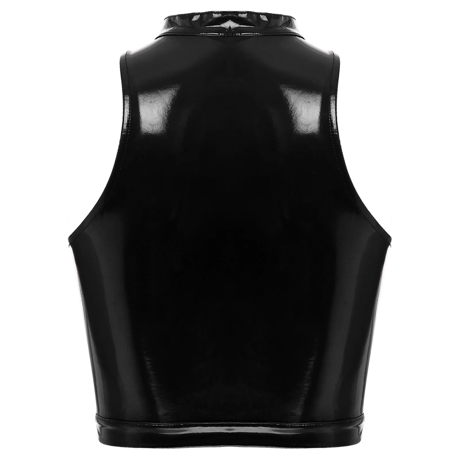 Model Number: Women's Patent Leather Sleeveless Crop Tops