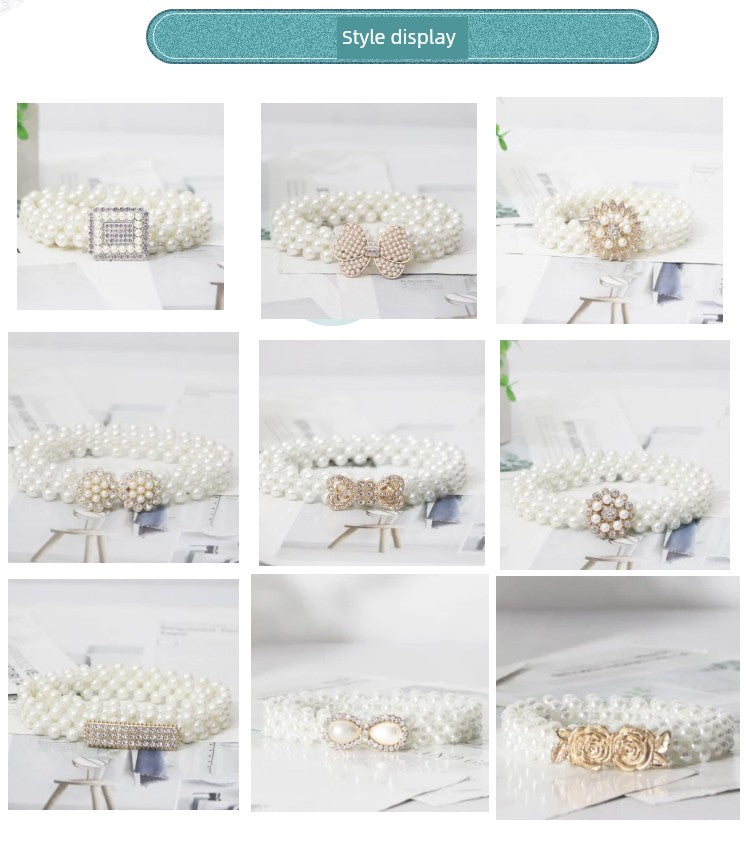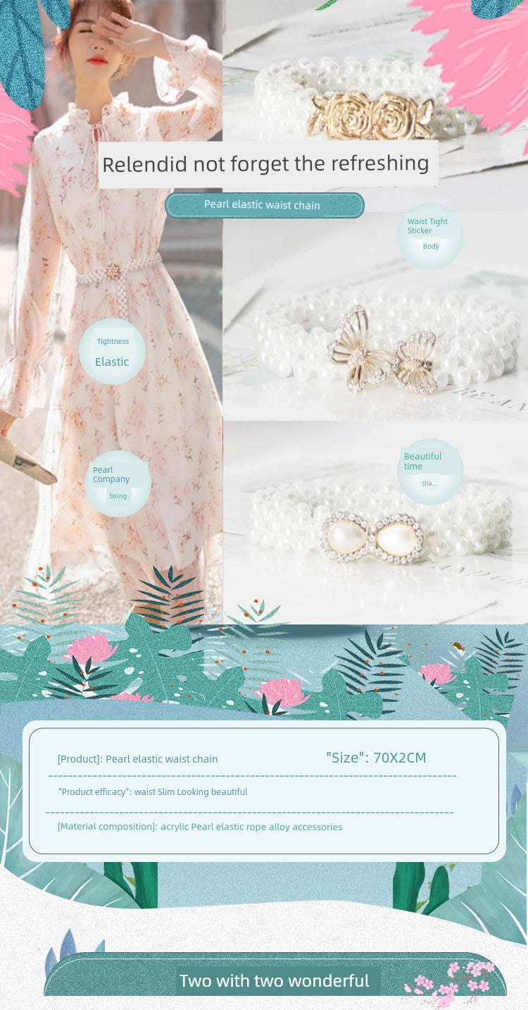 Women's Pearl Elastic Rhinestone Hanfu Waist Dress