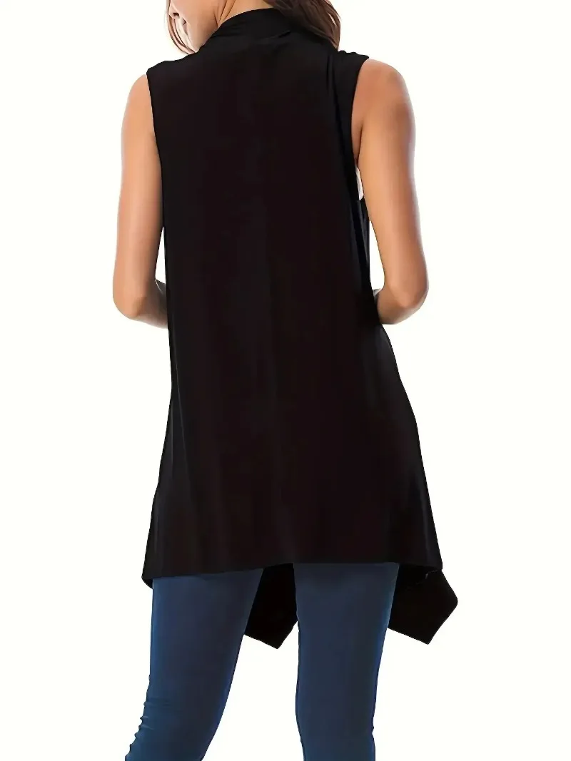 Women's Plus Size 1XL-5XL Fashionable Asymmetrical Hem Sleeveless Cardigan Versatile Solid Color Casual Cardigan Simple Cardigan