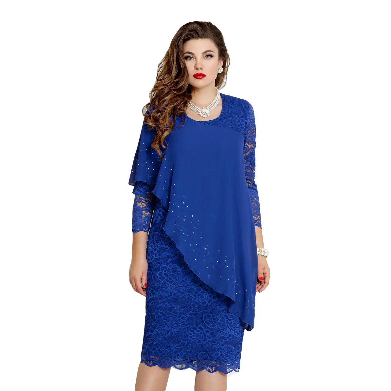 Women's Plus Size New Year Knitted Dresses 2022 Mesh Lace Long Sleeve Stitching Luxury Evening Fake Two-piece Chiffon Dress 90s