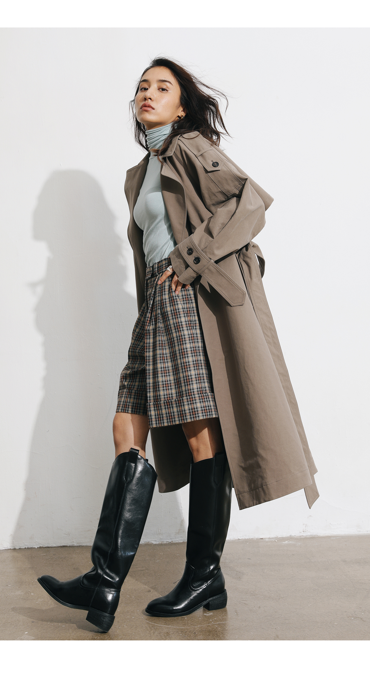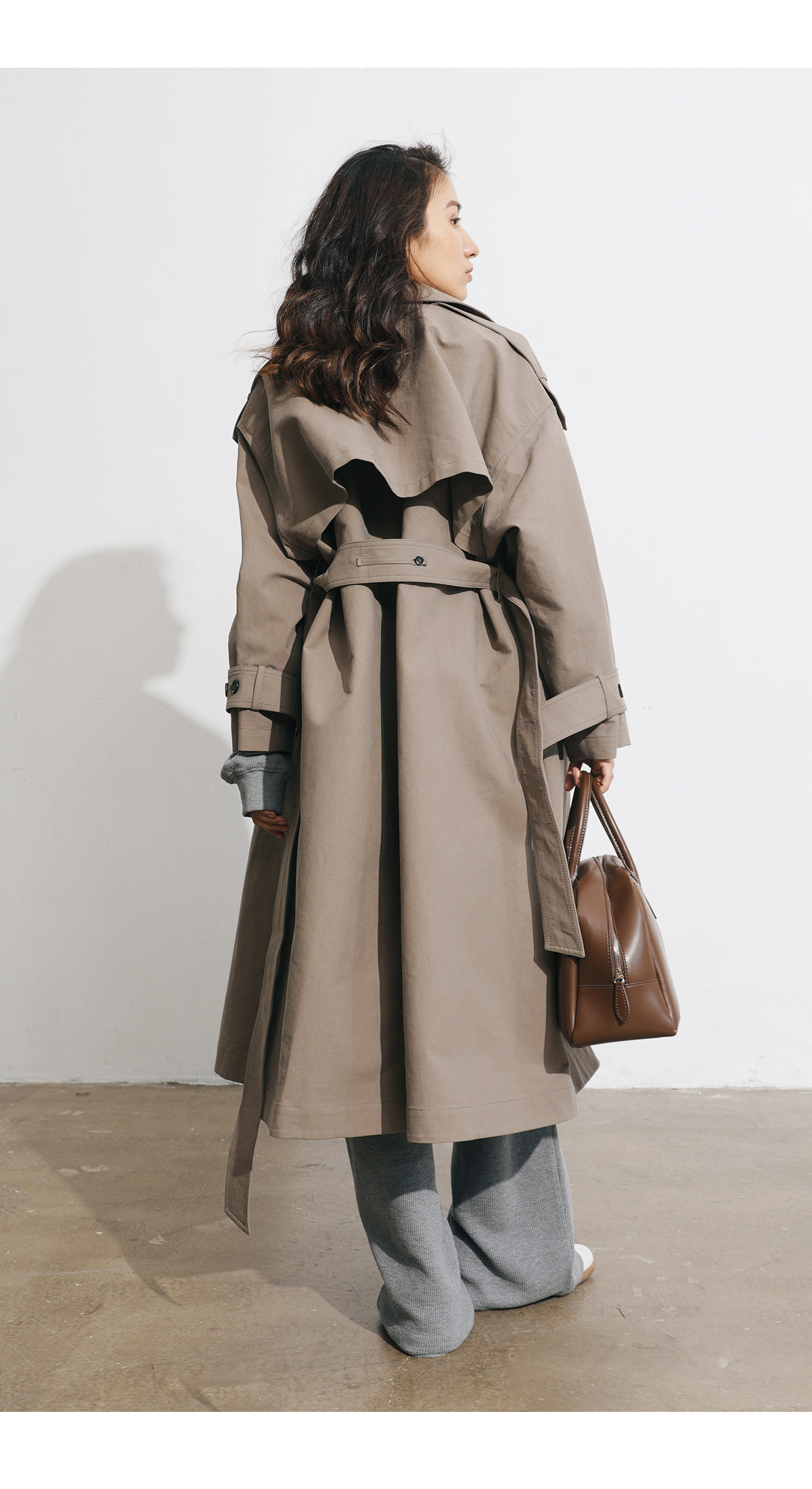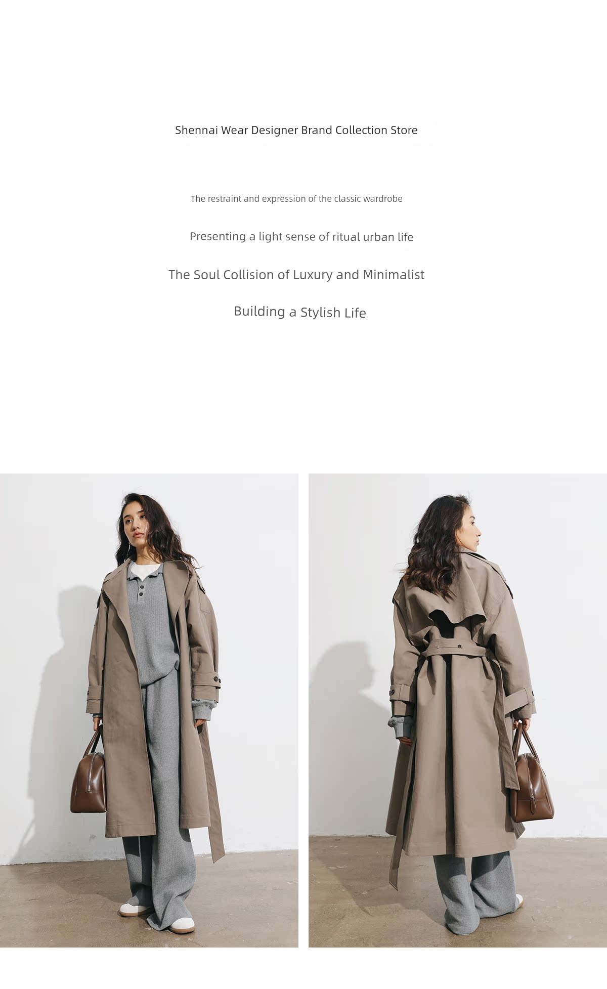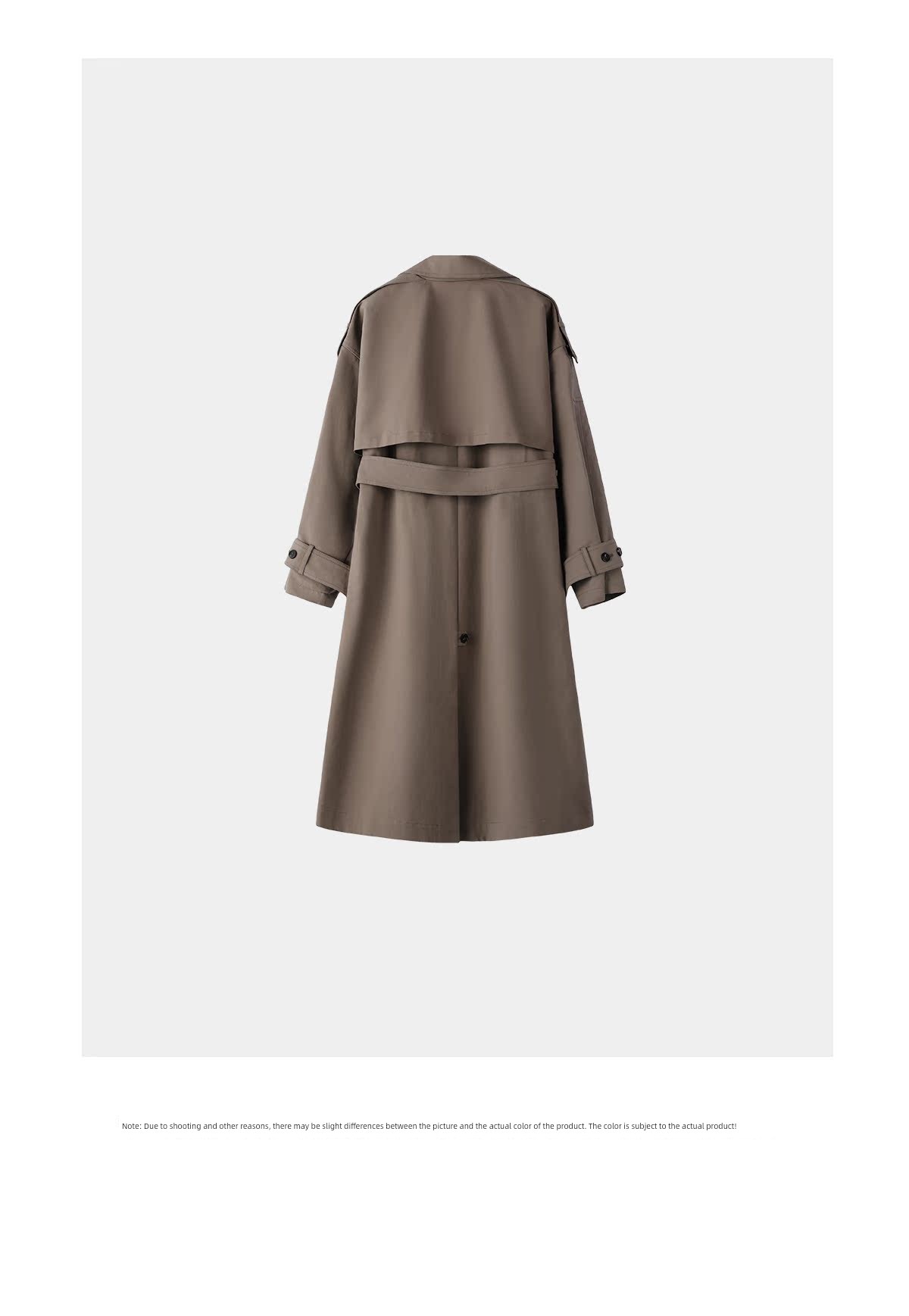 Women's Spring Clothing Fashion Gray Coffee Color Loose Shoulder Ins Style Minimalist Casual Very Wide Long Trench Coat