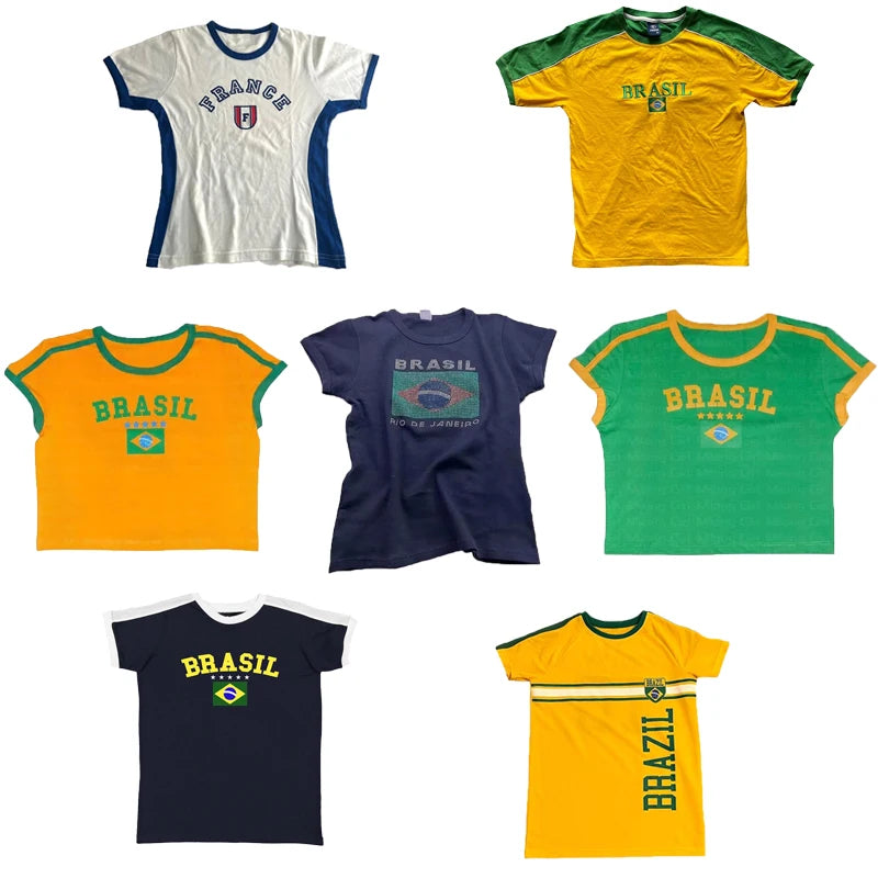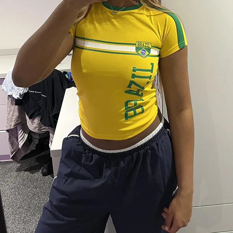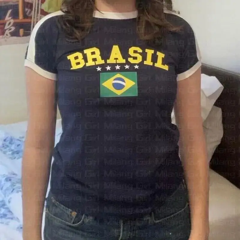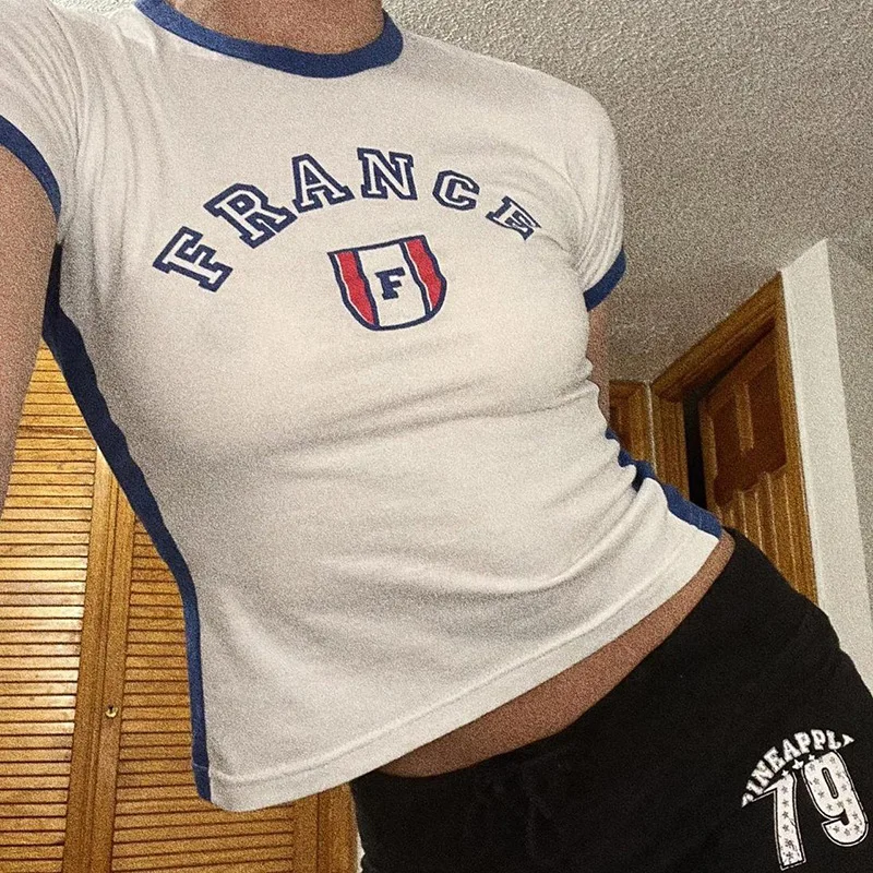 Women's Streetwear Cute Lettre Print T-Shirt Y2k Punk Summer Casual Preppy Style Slim Crop Top Vintage Sexy Grunge Fairy Tees