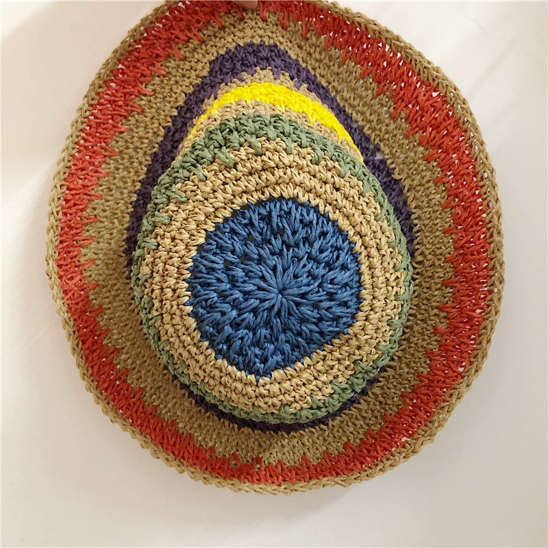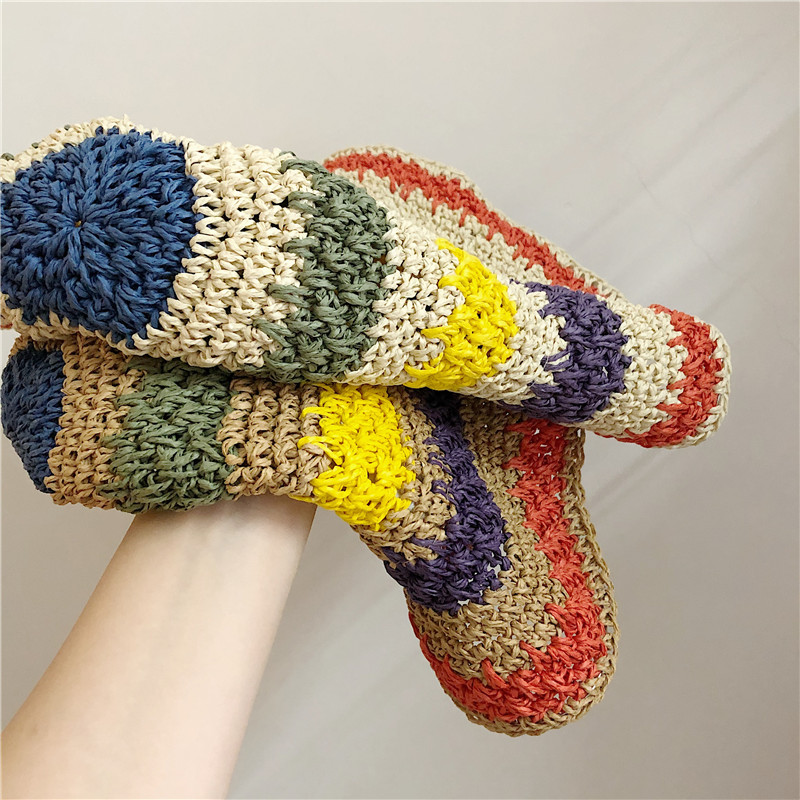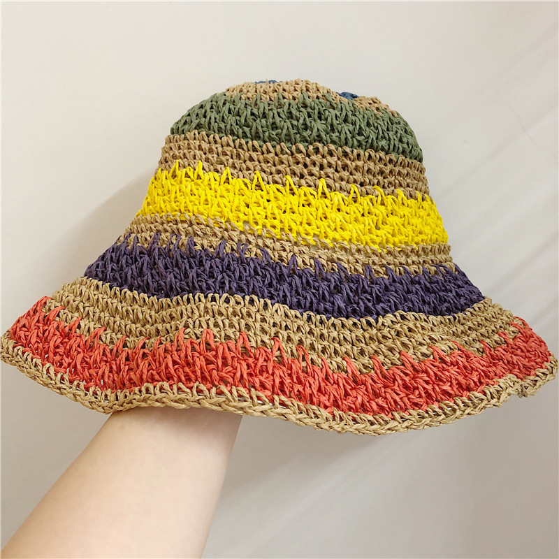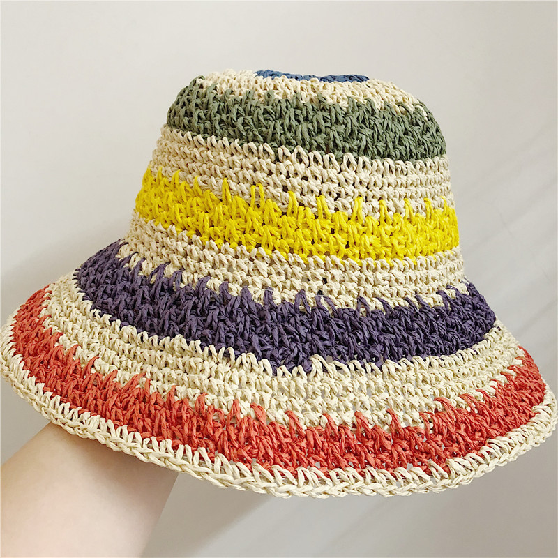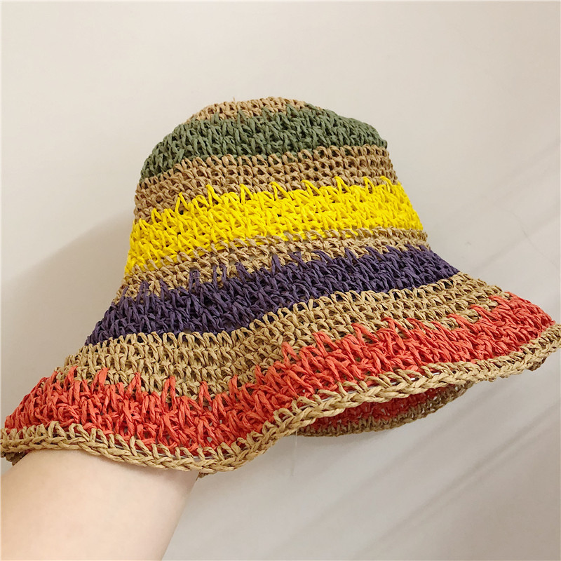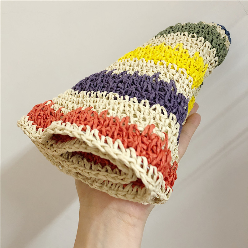 Women's Striped Sun Hat Summer Foldable Outing Straw Hat