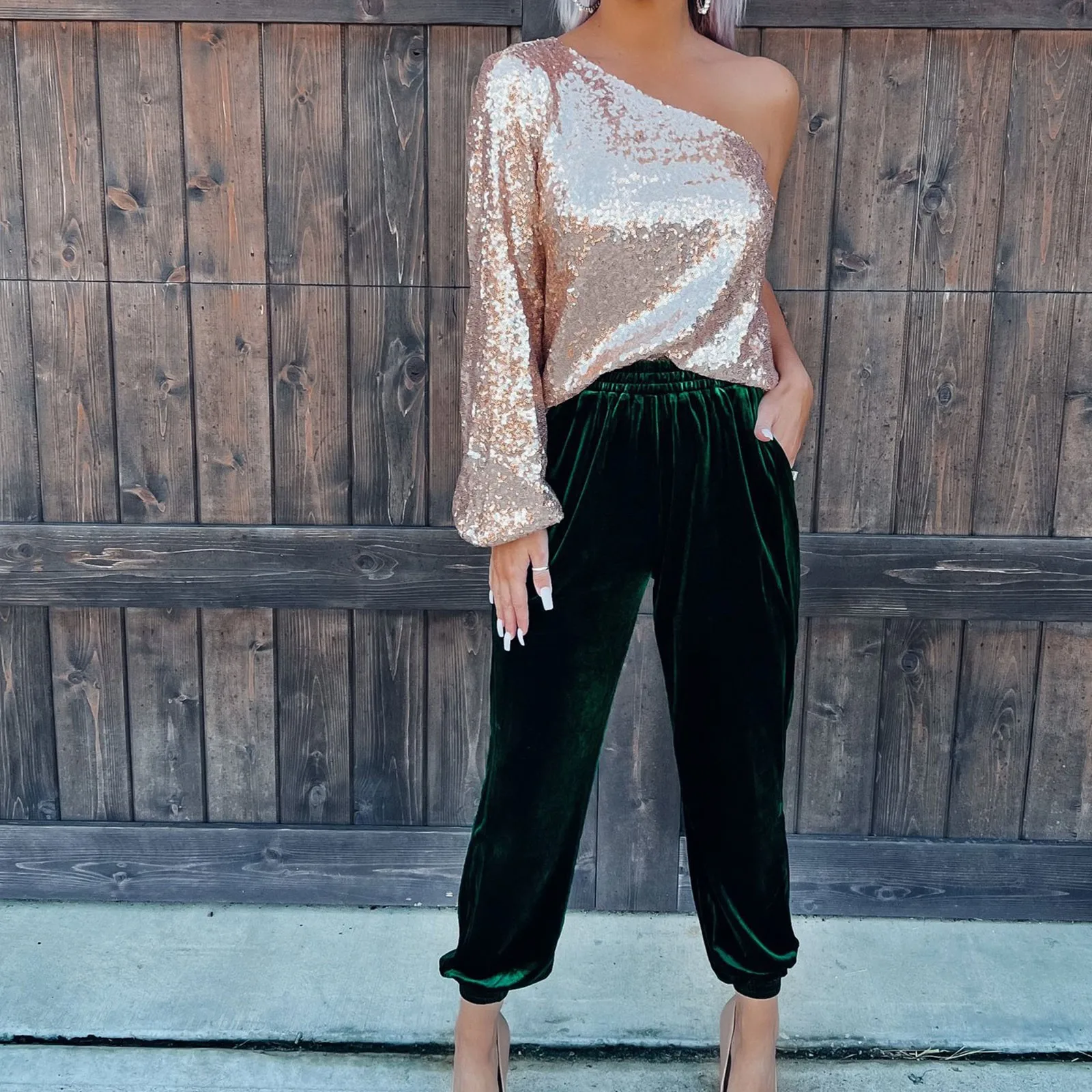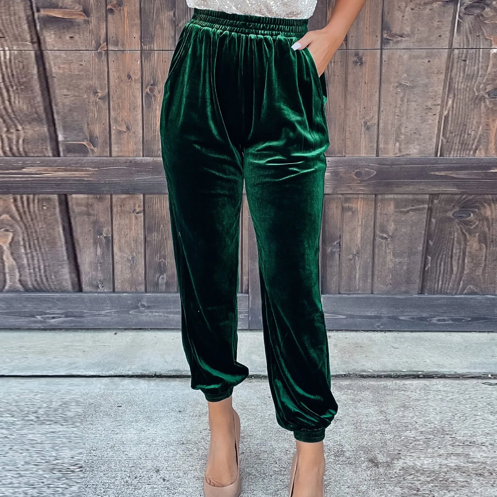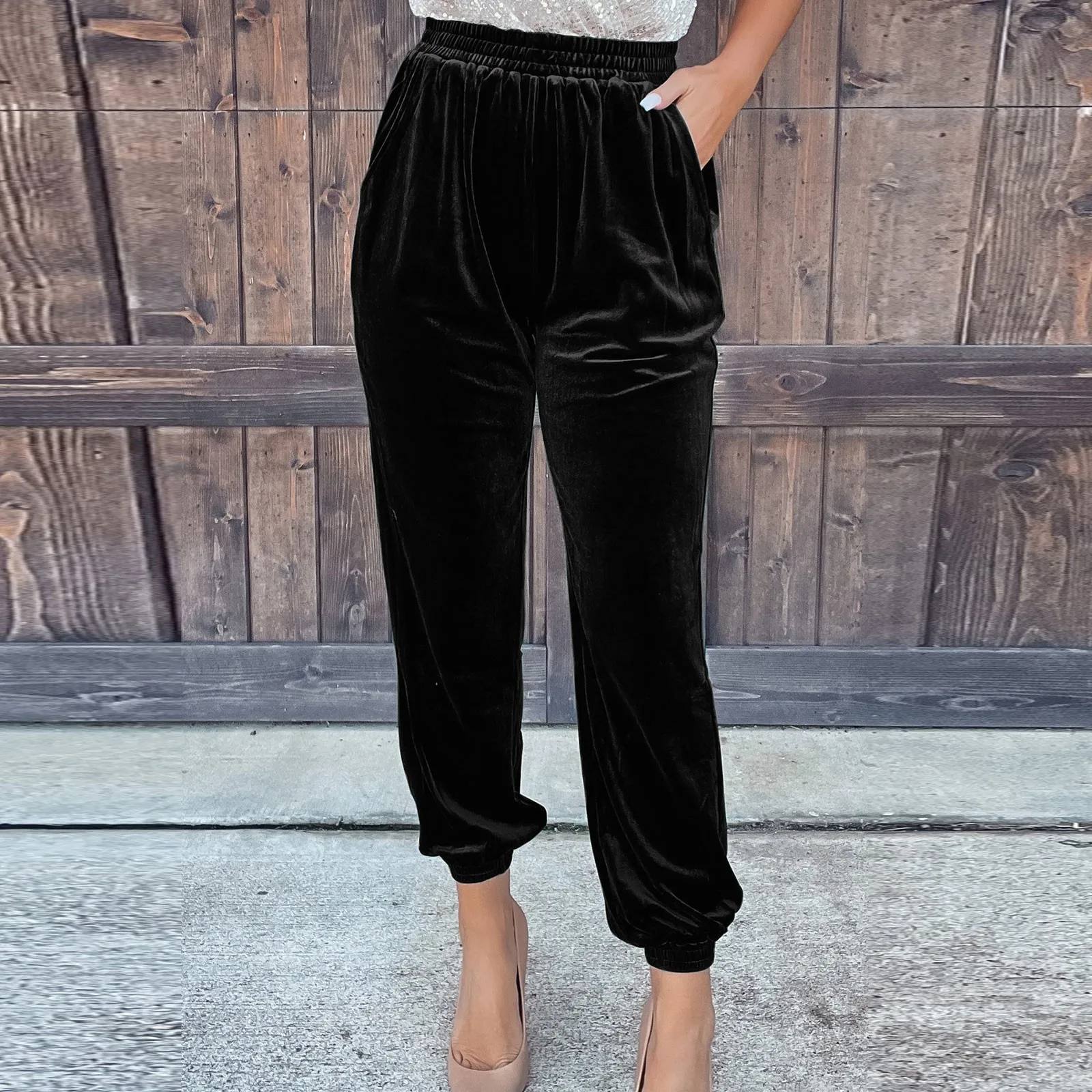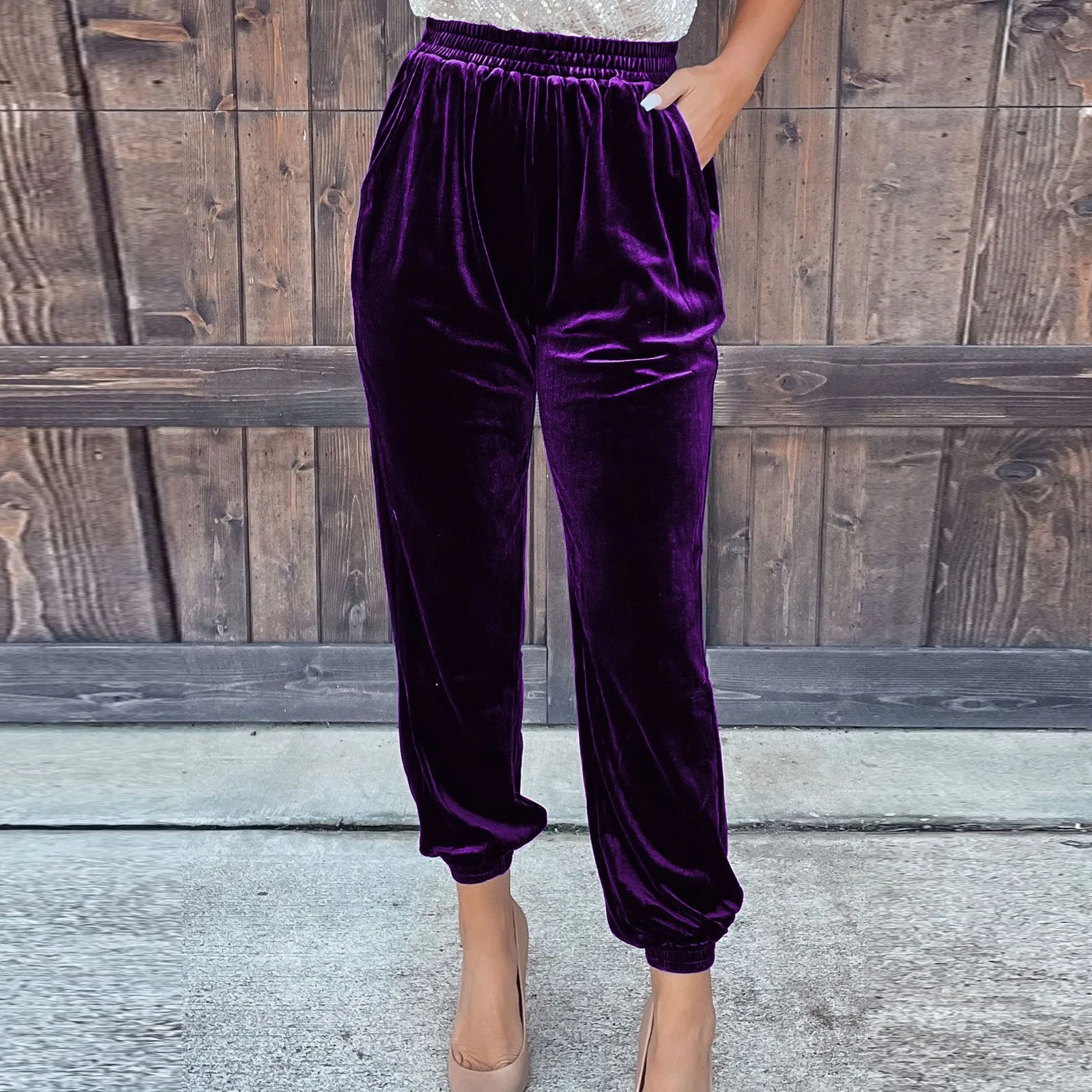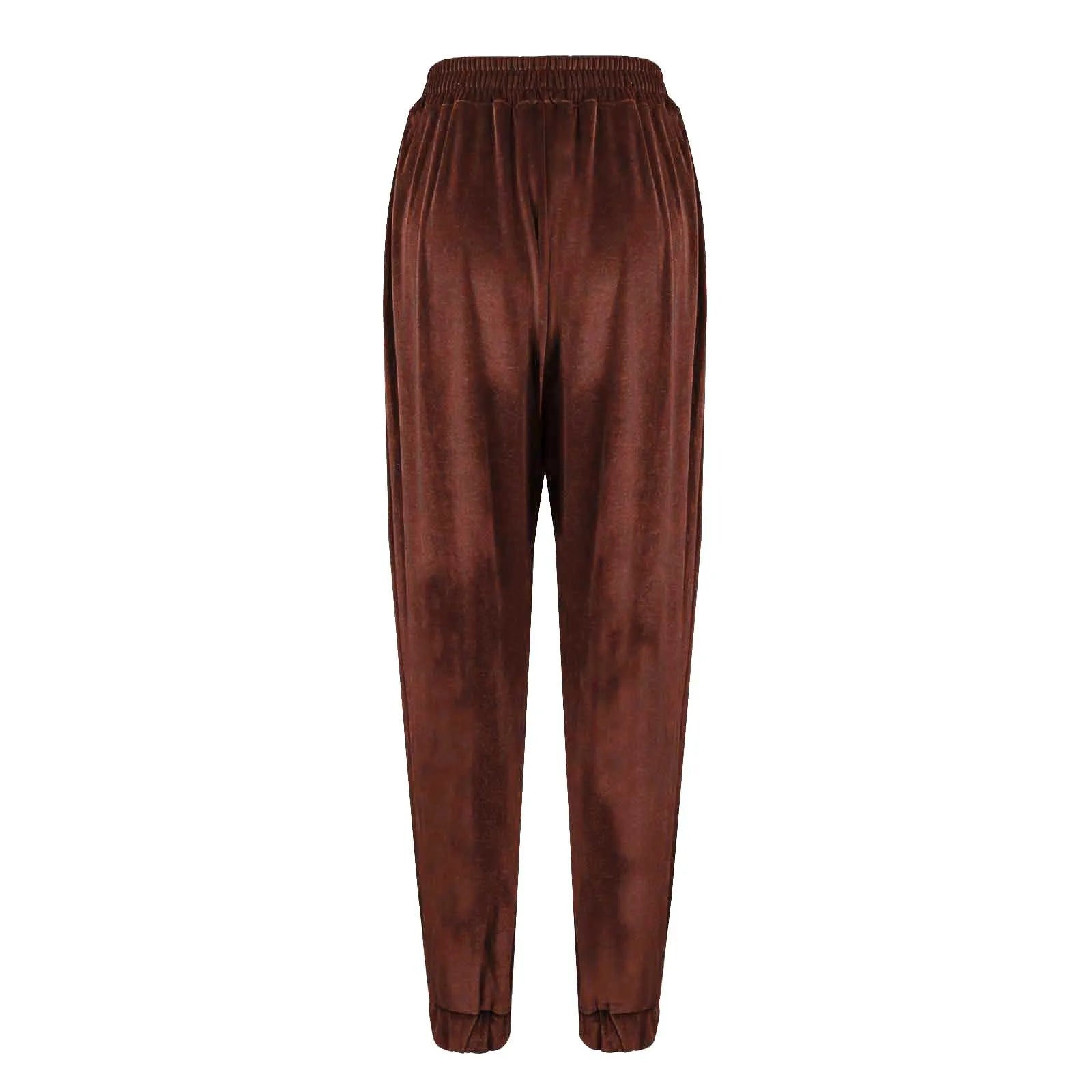 Women's Ladies Gold Velvet Trousers Straight Trousers Elastic Waist Casual Pants
