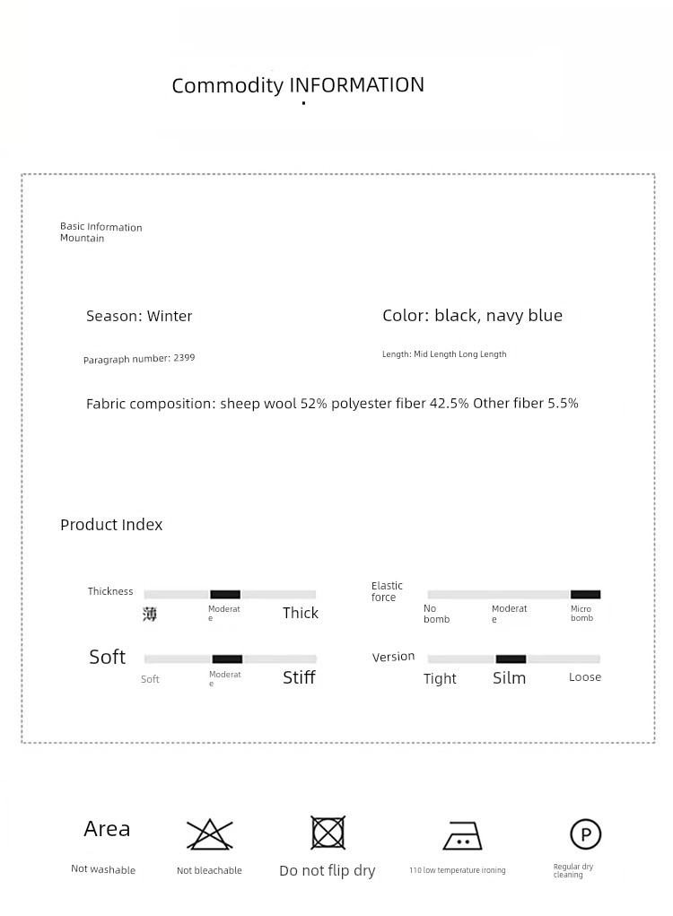 Material composition: Sheep Wool 52% Polyester 42.5% Other Materials 5.5%