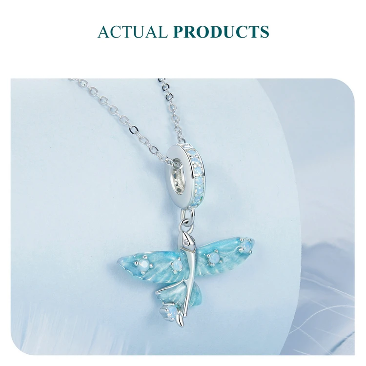 WOSTU 925 Sterling Silver Magical Flying Fish Pendants Blue Ocean Whale Bead Fit Original Bracelet DIY Charms Jewelry Making