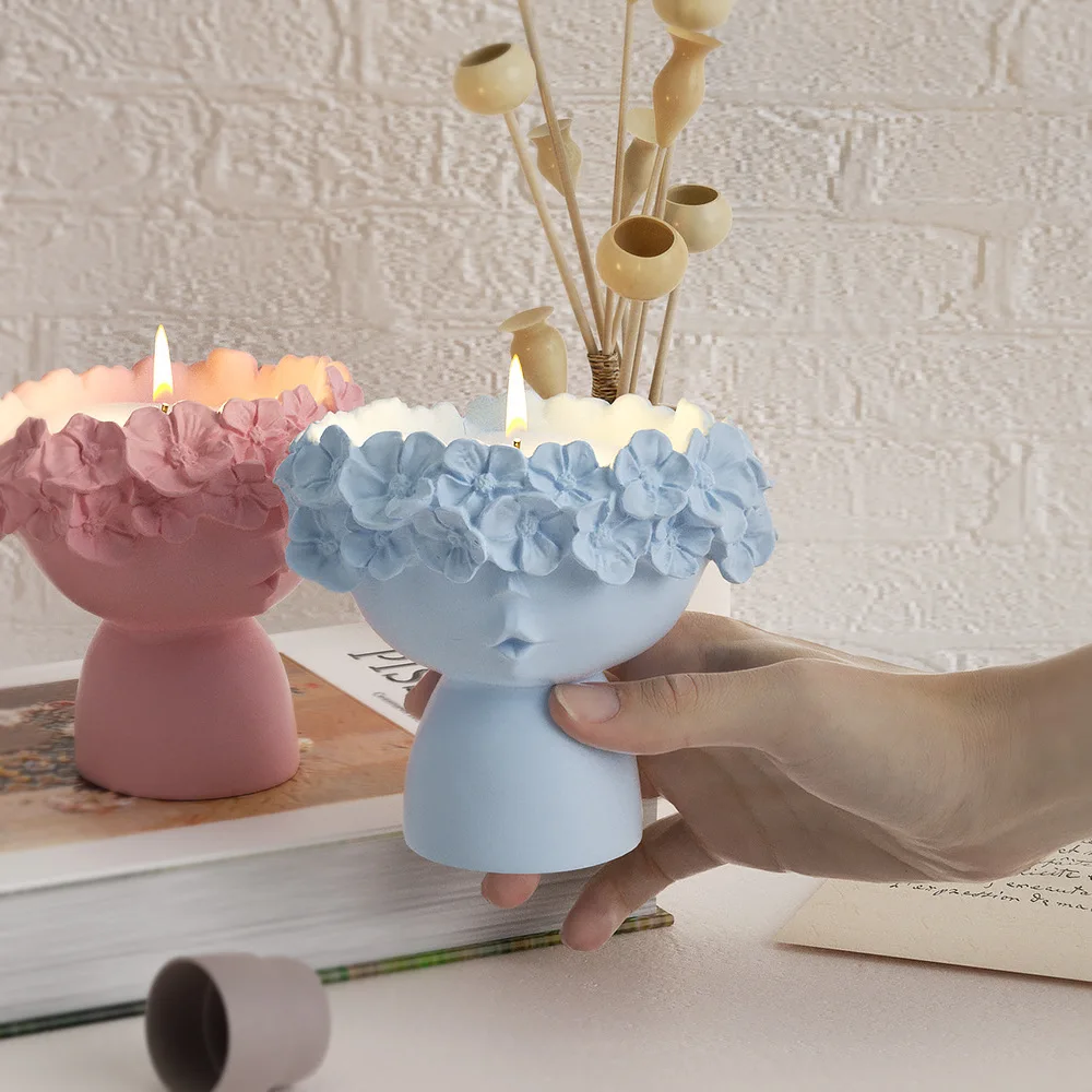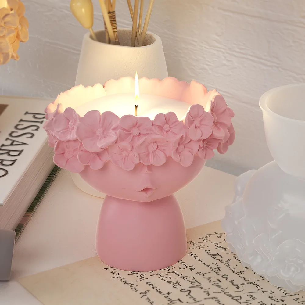 Wreath Girl Candle Cup Holder Silicone Mold Vase Garland Girl Flower Pot Gypsum Resin Epoxy Mould DIY Handmade Home Decor Gift
