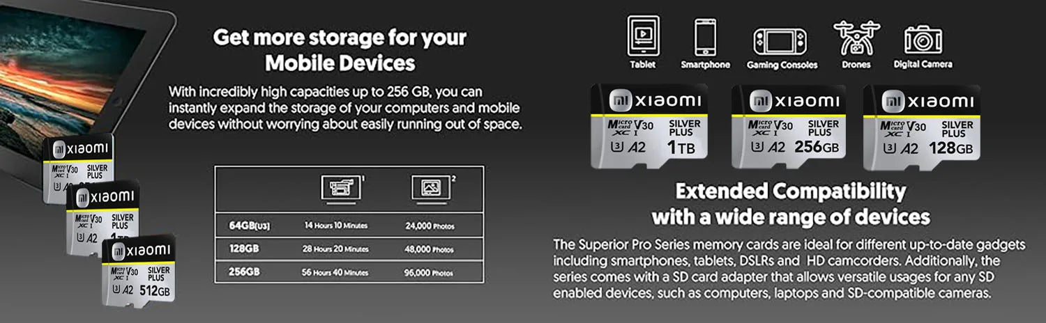 2. High quality storage: Ideal for high resolution photos, for recording and storing Full HD/4K video and any other data type