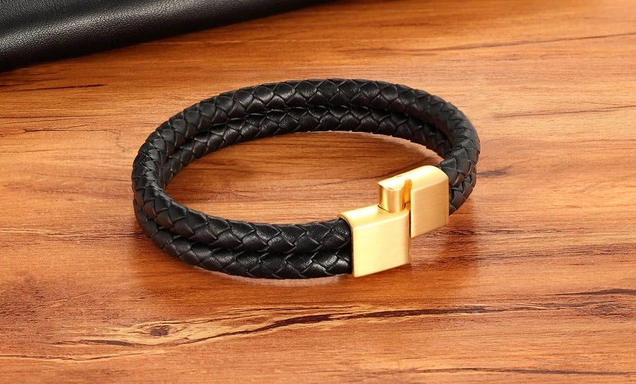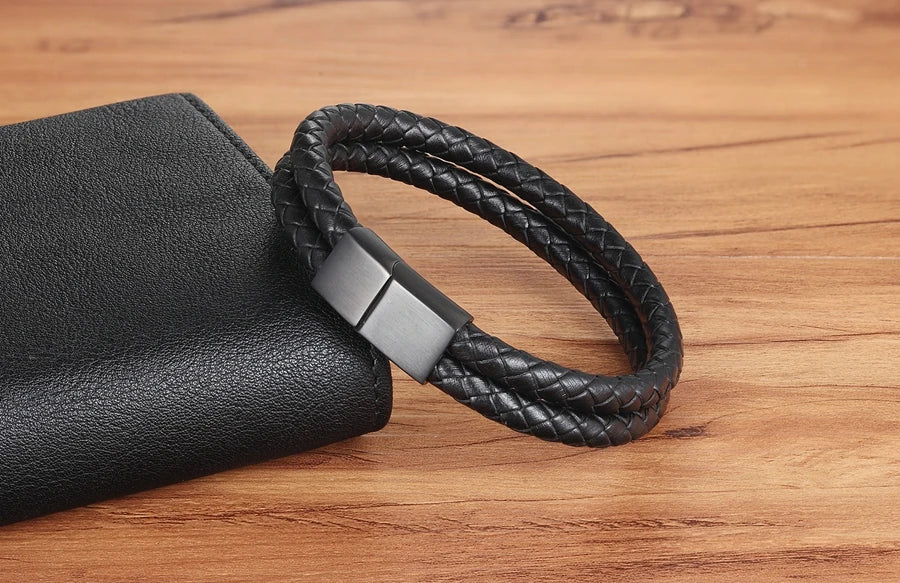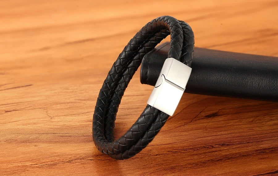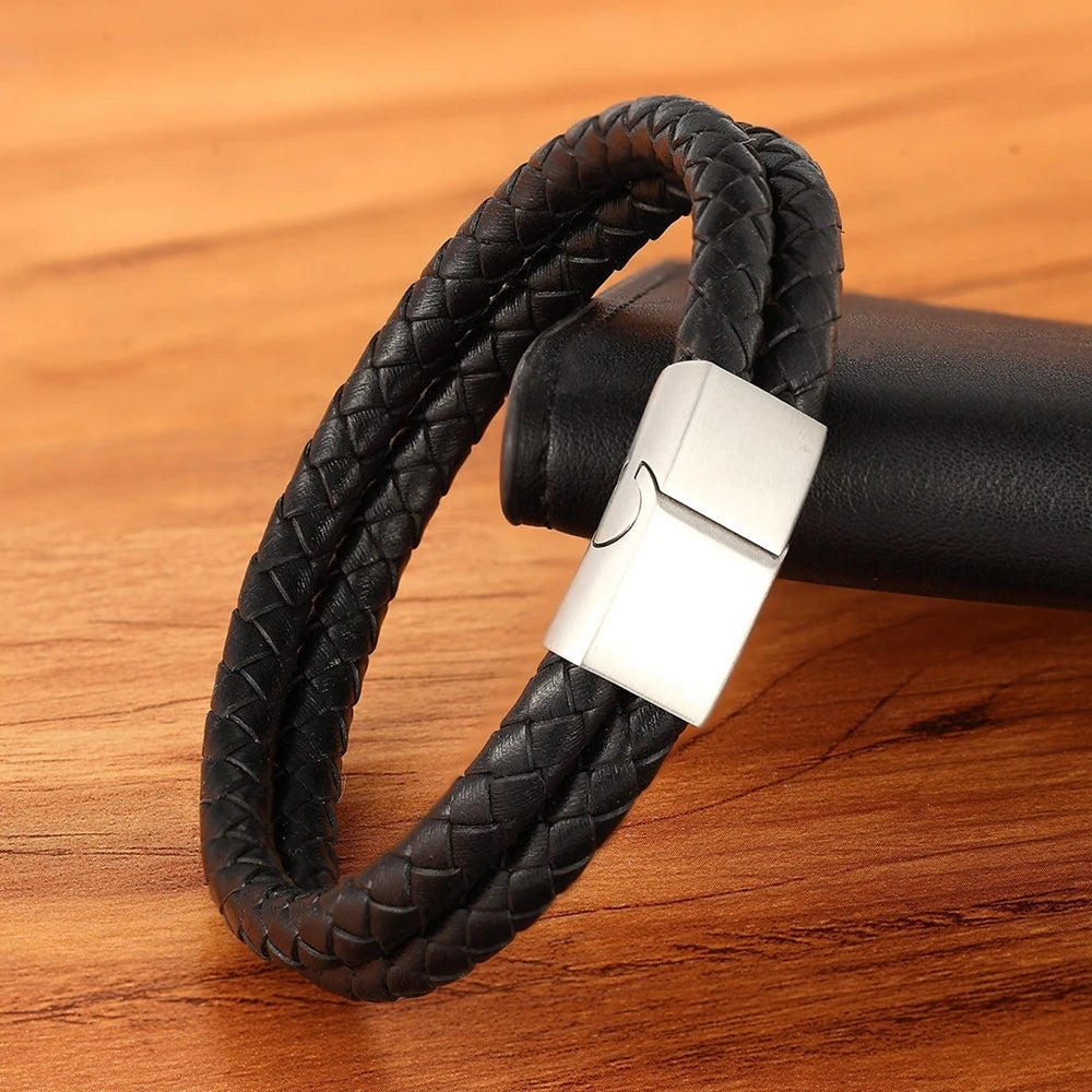 Name: Double Leather Combination Men's Stainless Steel Bracelet