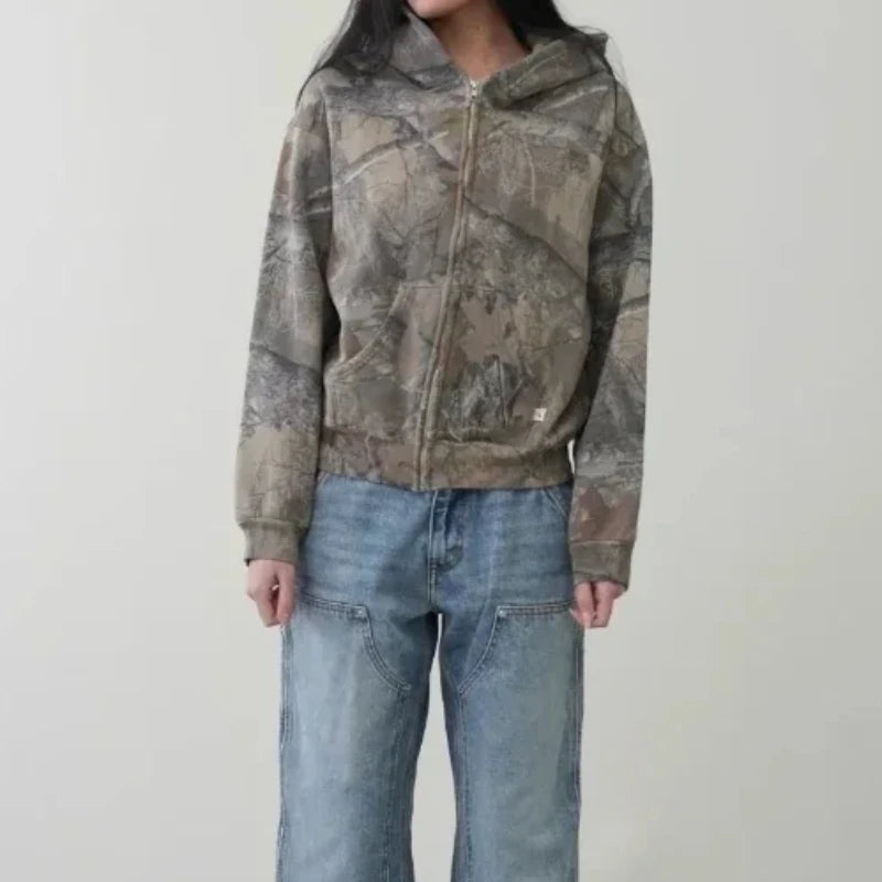 Y2K Harajuku men and women sportswear hip-hop street fashion women camouflage pattern zippered hoodie zip up hoodie sweatshirt