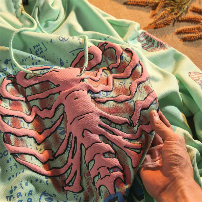 Y2K Pink Skeleton Hoodies Women Autumn Streetwear pullover Goth Sweatshirts Harajuku Grunge Oversized Winter Hoodies Female