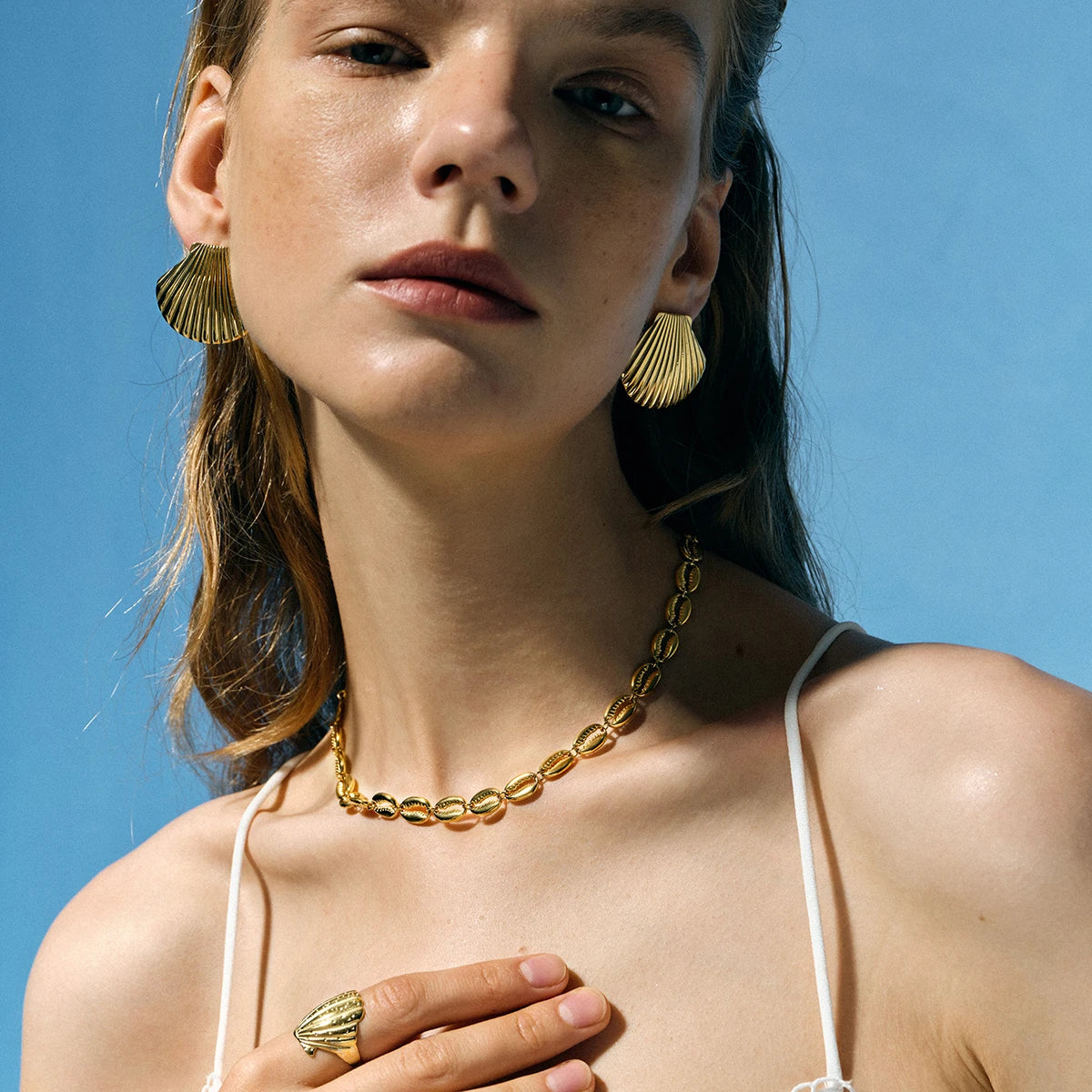 Youthway Shell Textured Metal Stainless Steel Earrings Summer Beach Holiday Charm Jewelry Waterproof Holiday Summer Jewelry