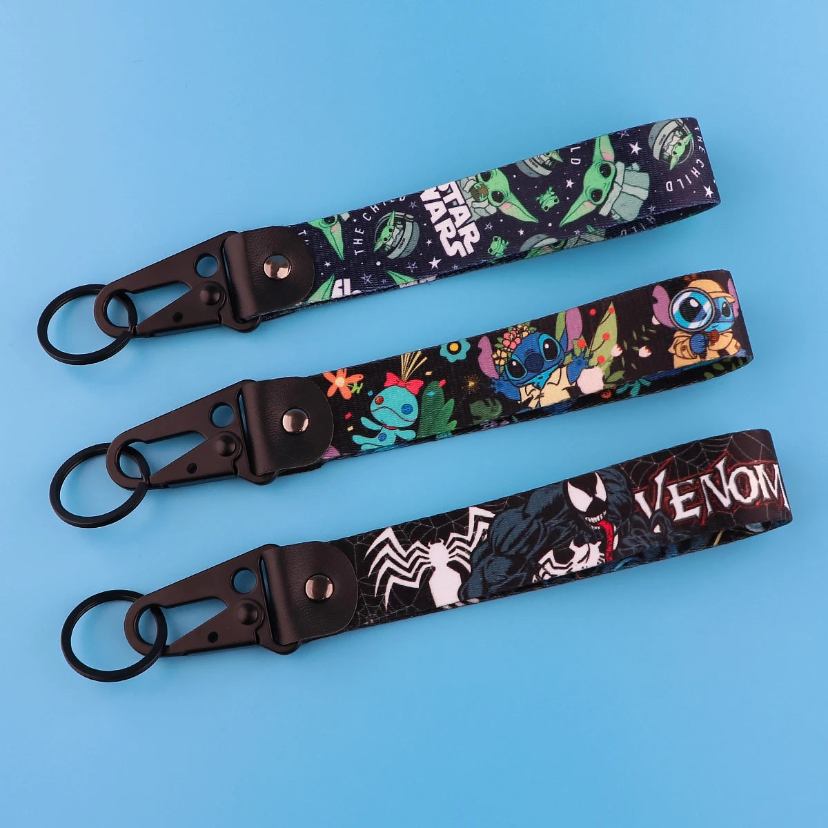 YQ1385 Stitch Eagle Beak Keychain Lanyard Yoda Keyrings Venom Short Keychain Strap Car Keys Bags Pendant Holder Fans Gift
