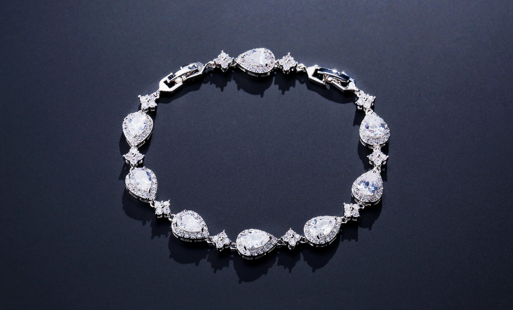 ZAKOL Classic Geometric Water Drop CZ Bracelet for Women Bridal Gorgeous Buling Zircon Party Wedding Jewelry